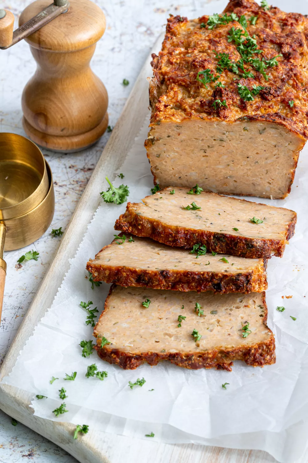 Leg het kippengehaktbrood vervolgens in een beboterde ovenschaal en plaats gedurende 30 à 40 minuten in het midden van de oven. Laat lichtjes afkoelen en snijd in plakken. Zowel koud als warm erg lekker!