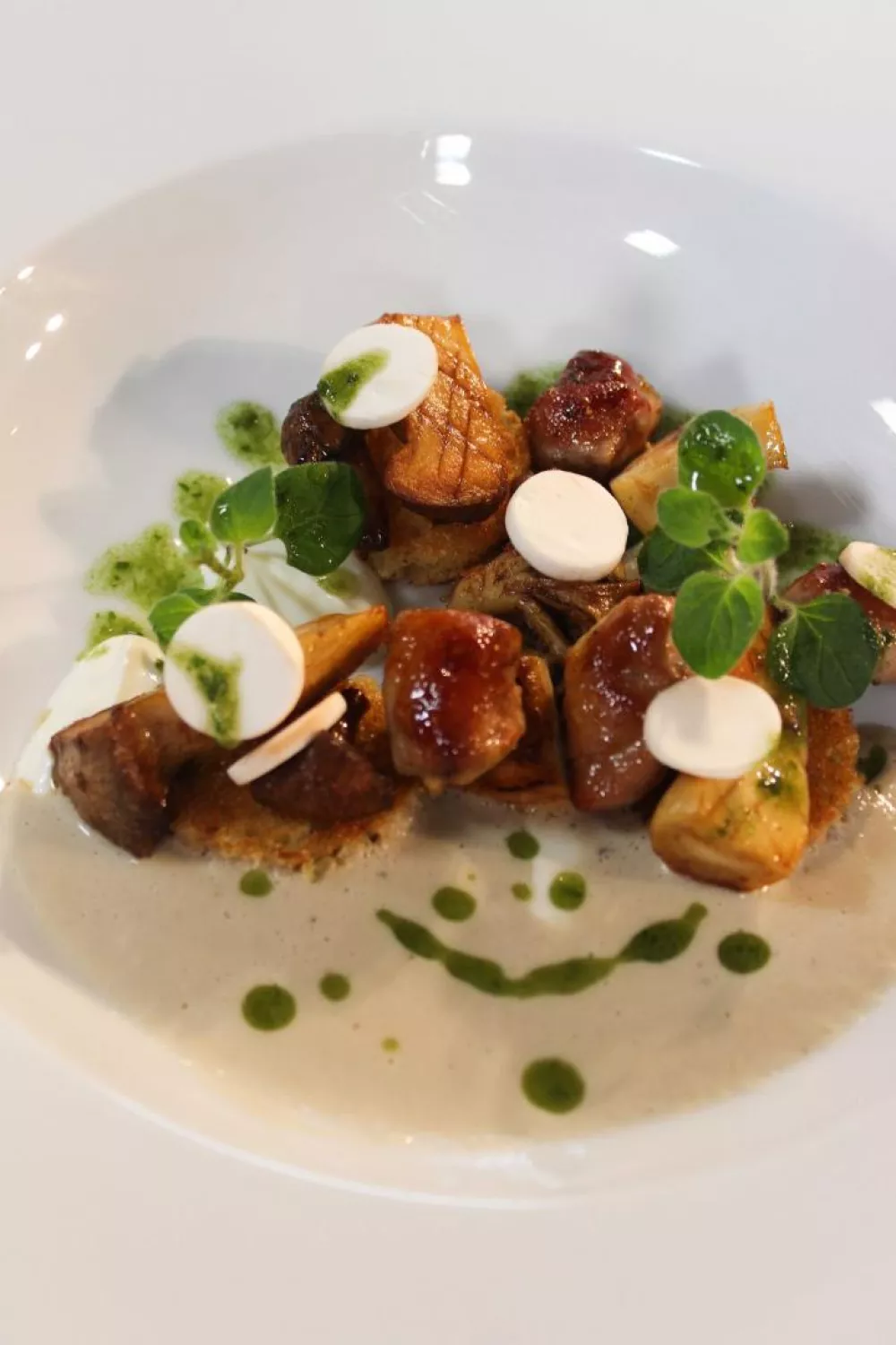 Knapperige briochetoastjes, smeuïge champignonsoep en goudbruin gebakken kippenoesters vormen samen een elegant voorgerecht met rijke, romige tonen en frisse basilicumolie. De soep wordt kort gestoofd met rozemarijn en cognac en gepureerd tot fluweel, terwijl ricotta met limoen en suikersiroop voor een lichtzoet tegenwicht zorgt. Perfect voor een feestelijk diner of een knus herfstmaal waarin sauteren en blussen centraal staan.