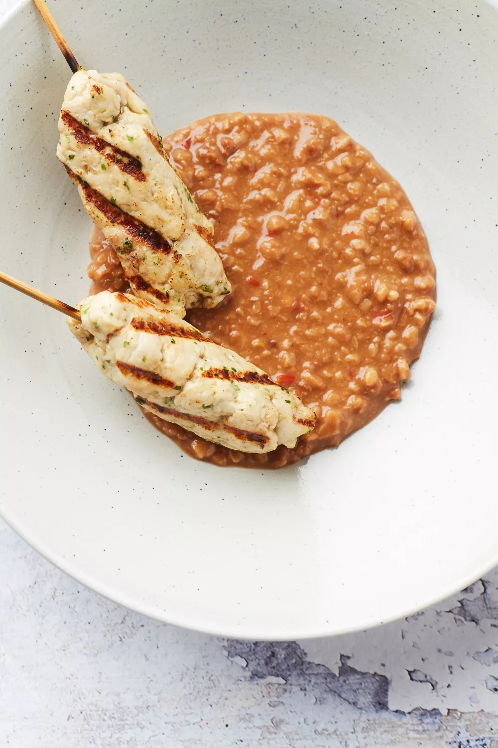 Kippenspiesjes met pindasaus