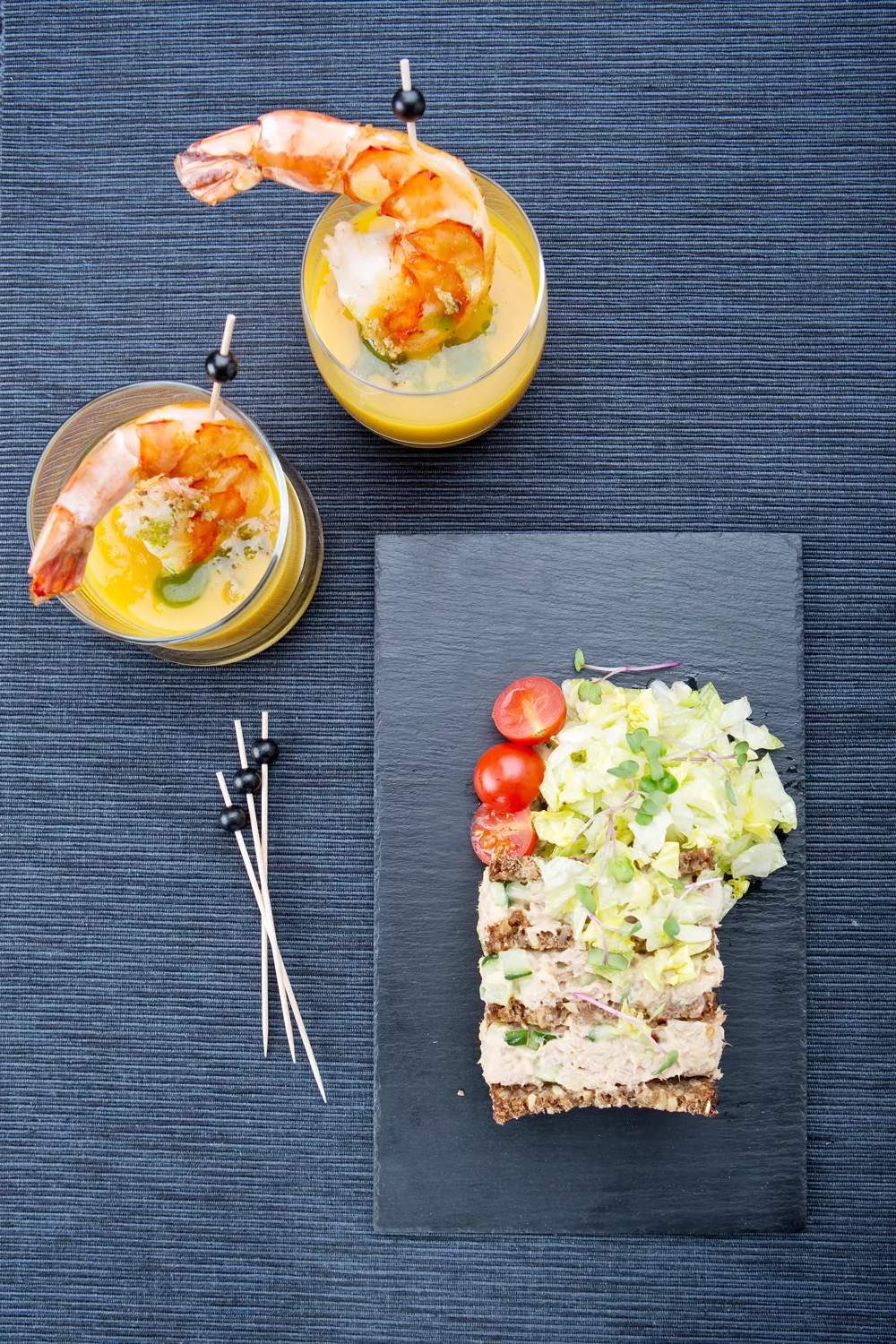 Snijd de ijsbergsla fijn, leg deze op het pumpernikkelbrood en daarop het gezonde slaatje.