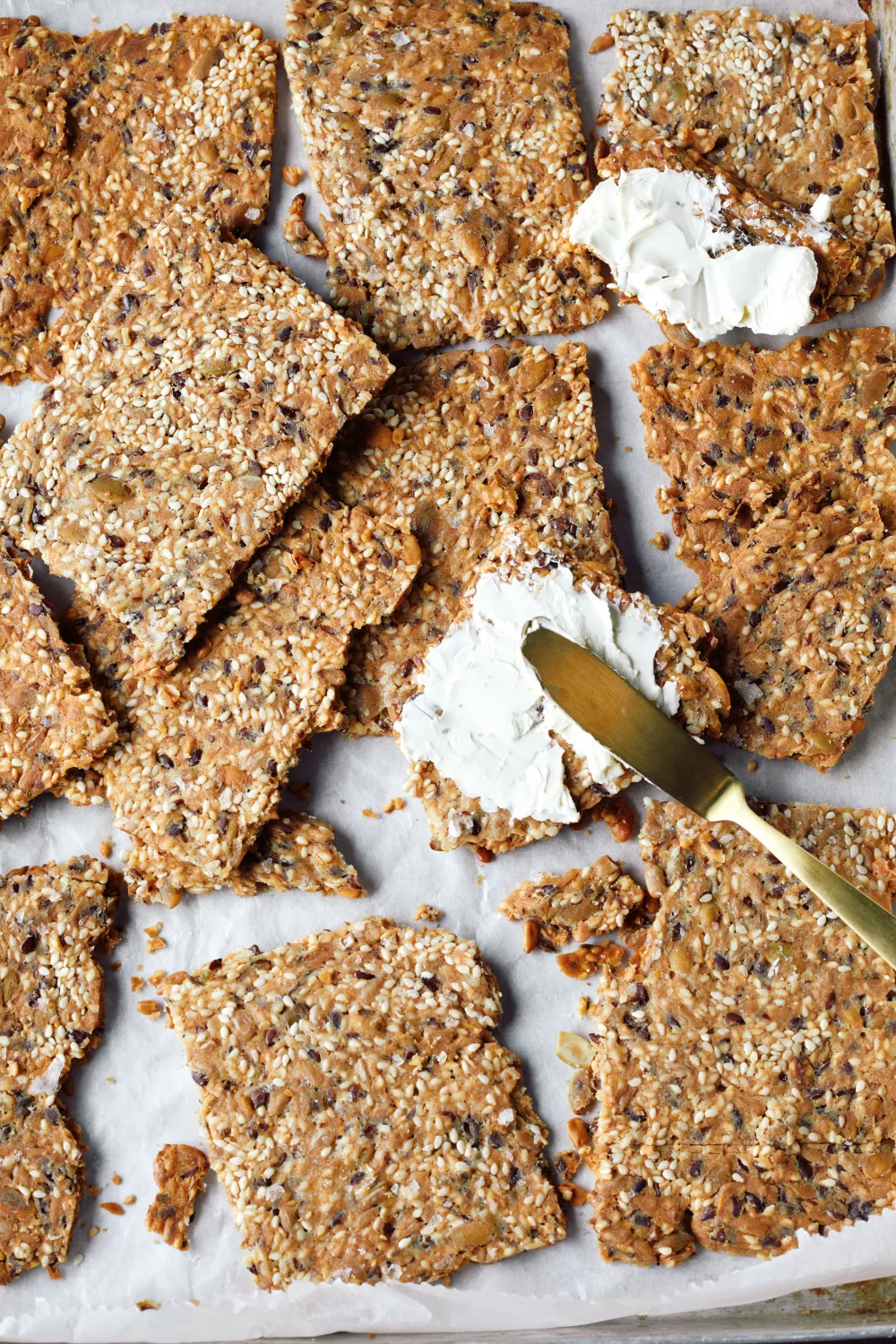 Bak ongeveer 45 minuten in de oven. Laat afkoelen voordat je het knäckebröd in stukken breekt.