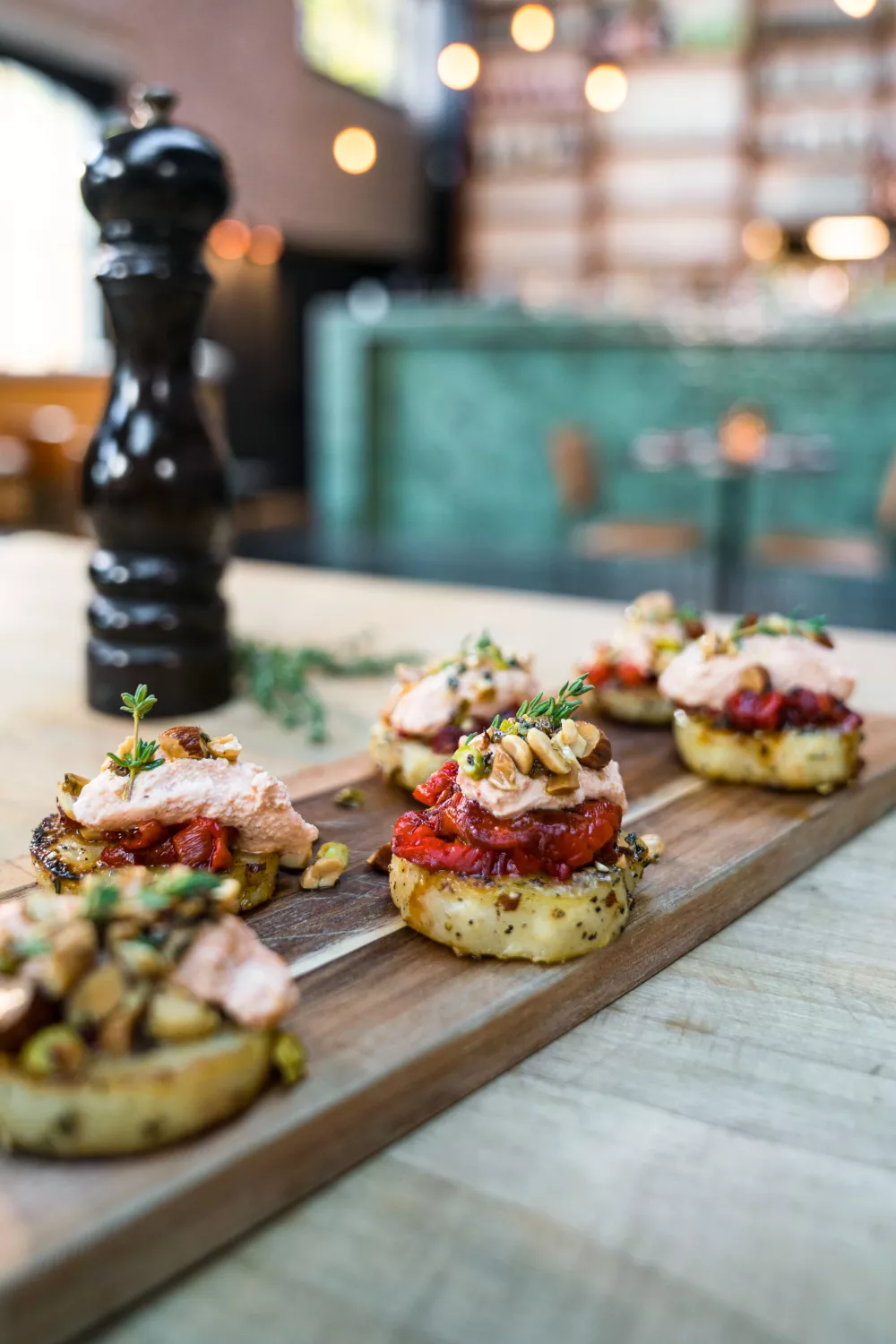 Knapperige knolseldertoastjes met zoete geroosterde paprika, romige ricotta en een pittige toets harissa, ideaal als feestelijk borrelhapje of elegant voorgerecht voor zonnige nazomer- en herfstavonden. De knolselder wordt eerst zacht gegaard in de oven en daarna krokant gebakken in de pan, terwijl tijm en gebakken noten extra aroma en textuur geven. Serveer als smaakvol aperitief bij een gezellige maaltijd.