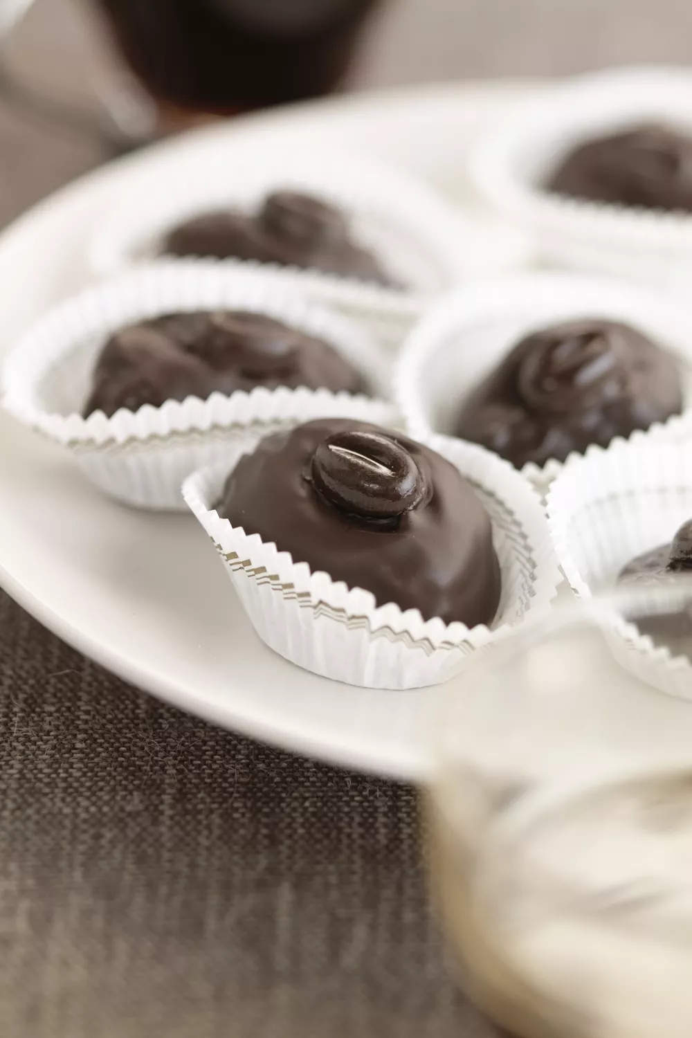 Zachte abrikozen wellen in sterke koffie en volle rode port tot ze intens van smaak zijn, daarna worden ze één voor één in donkere chocolade gedoopt. Een eenvoudig au bain-marie of even in de microgolfoven smelten van de chocolade is alles wat je nodig hebt om deze luxe snack te maken. Heerlijk bij een kopje espresso of als verfijnde zoete hap bij een borrel, ideaal voor elk seizoen.