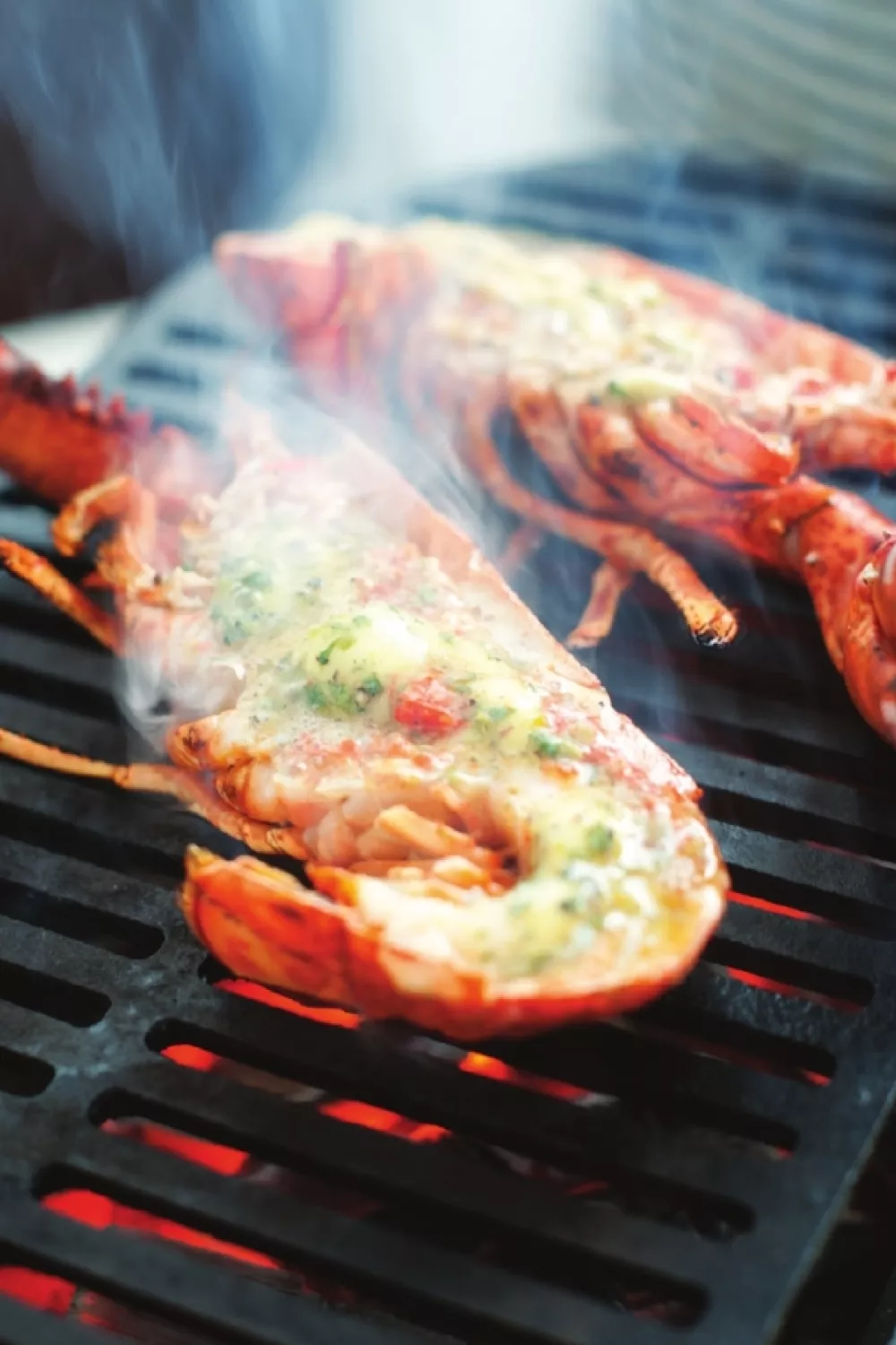 Gegrilde kreeft met een romige, kruidige limoensmeltende boter die het zoete schelpdier accentueert en verfrist met oregano en rasp. De kreeften worden doormidden gesneden en tijdens het grillen meerdere keren met zachte boter bestrijkt zodat het vlees sappig en aromatisch blijft. Een feestelijk, zomers gerecht dat perfect past bij een frisse salade en gepofte aardappel of knapperig stokbrood.