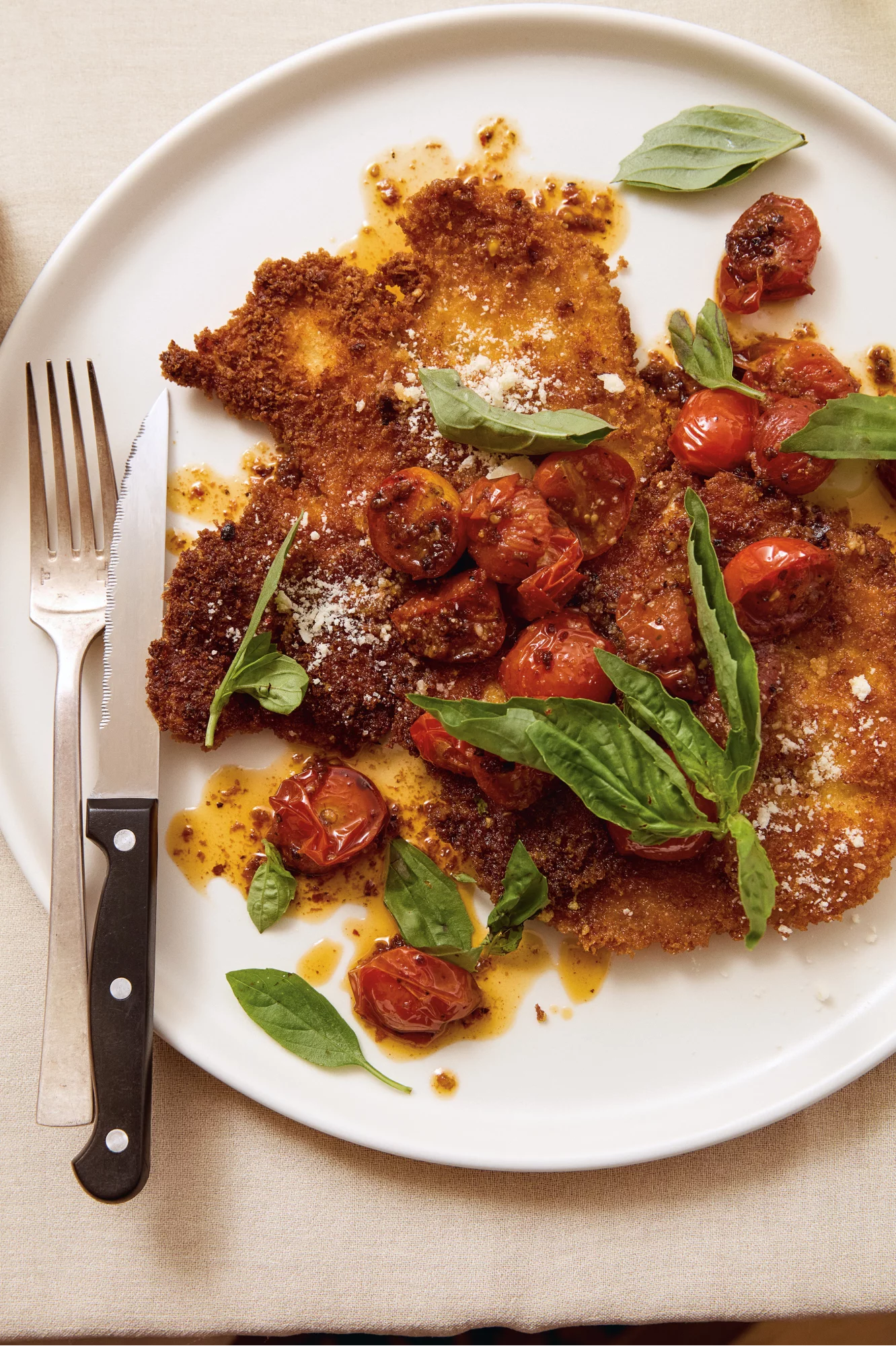 Deze krokante kipfilet met Parmezaanse kaas en tomaat is een heerlijk smaakvol gerecht met een perfecte balans tussen krokant en sappig. De goudbruin gebakken kip krijgt extra diepte door de hartige kaaskorst en frisse tomatensaus. Ideaal voor een snelle maar verfijnde doordeweekse maaltijd. Serveer met een frisse salade of wat pasta voor een complete en voedzame maaltijd.