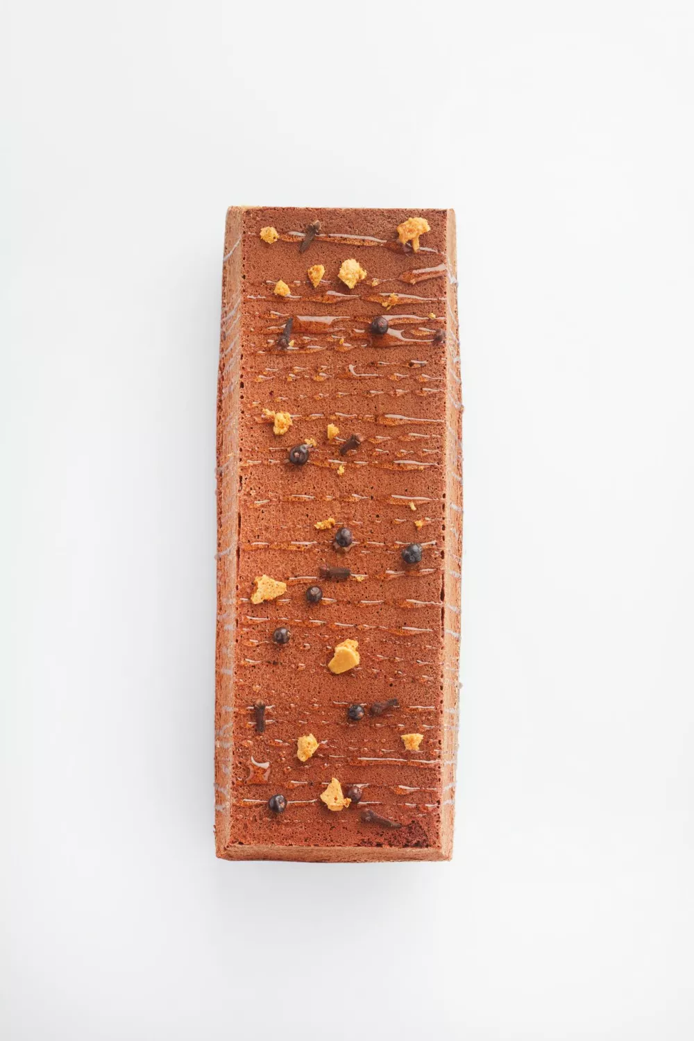 Laat de cake 10 minuten afkoelen in de vorm op een rooster. Ontvorm de cake en laat hem omgekeerd verder afkoelen op een rooster. Spuit wat extra honing op het oppervlak en garneer met chocoladecrumble.