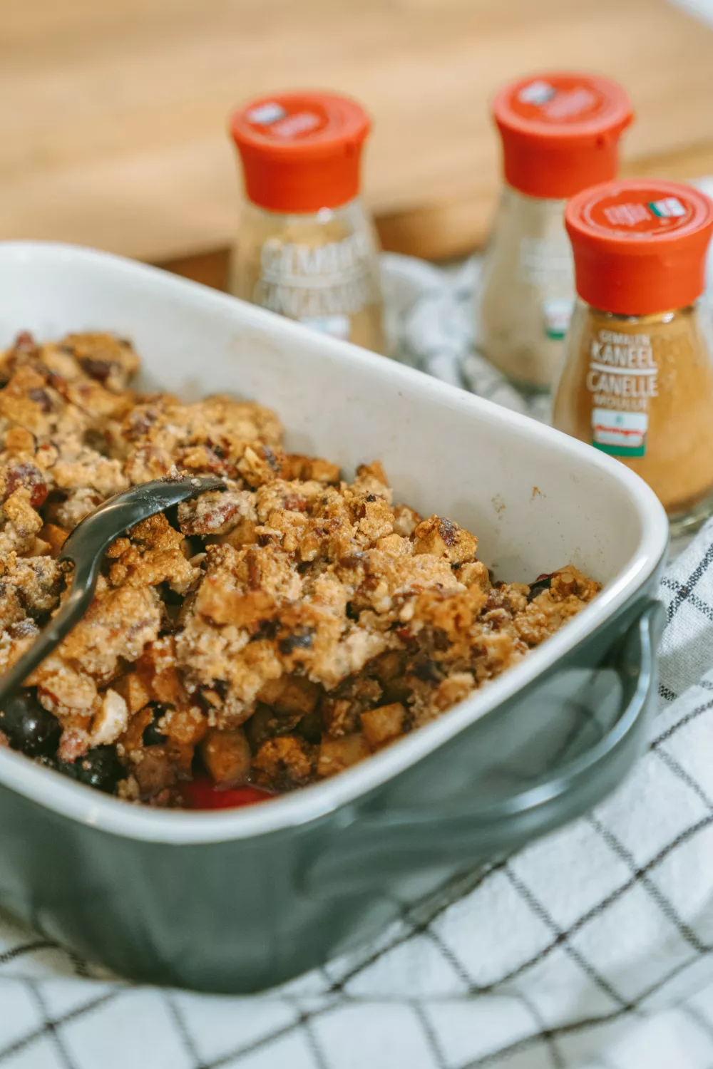 Stappenplan om recept “Kruidige crumble met peer en bessen” te bereiden