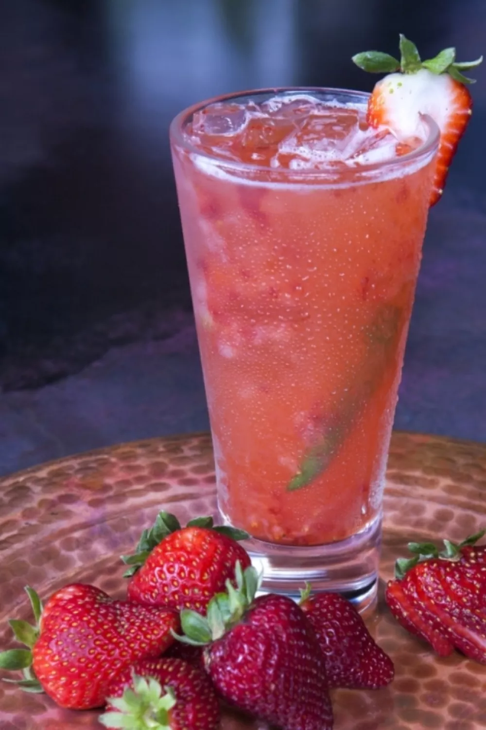 Koel het glas voor met 1 handje crushed ijs. Blender de aardbeien met het citroensap en suikerwater. Meng de overige ingrediënten in het mixglas van de shaker, voeg 3 cl aardbeiencoulis toe. Vul de shaker met de ijsblokjes, sluit af en shake krachtig. Strain de cocktail in het glas, werk af met de rest van het crushed ijs en een partje aardbei.