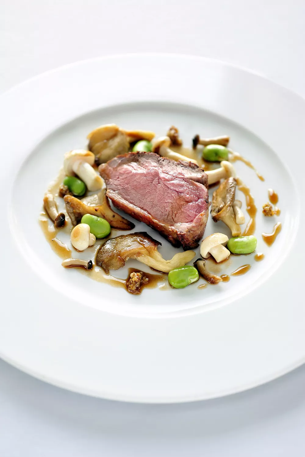 Zachte lamsbiefstuk, knapperig gebakken paddenstoelen en smeuïge tuinbonen met een ingekookte lamsfondsaus vormen samen een elegant hoofdgerecht voor een gezellig weekenddiner. Het vlees wordt kort en rosé gebakken en even gereserveerd om sappig te blijven, terwijl de paddenstoelen en bonen in boter worden opgefrist. Snel genoeg voor doordeweeks, feestelijk genoeg voor gasten.