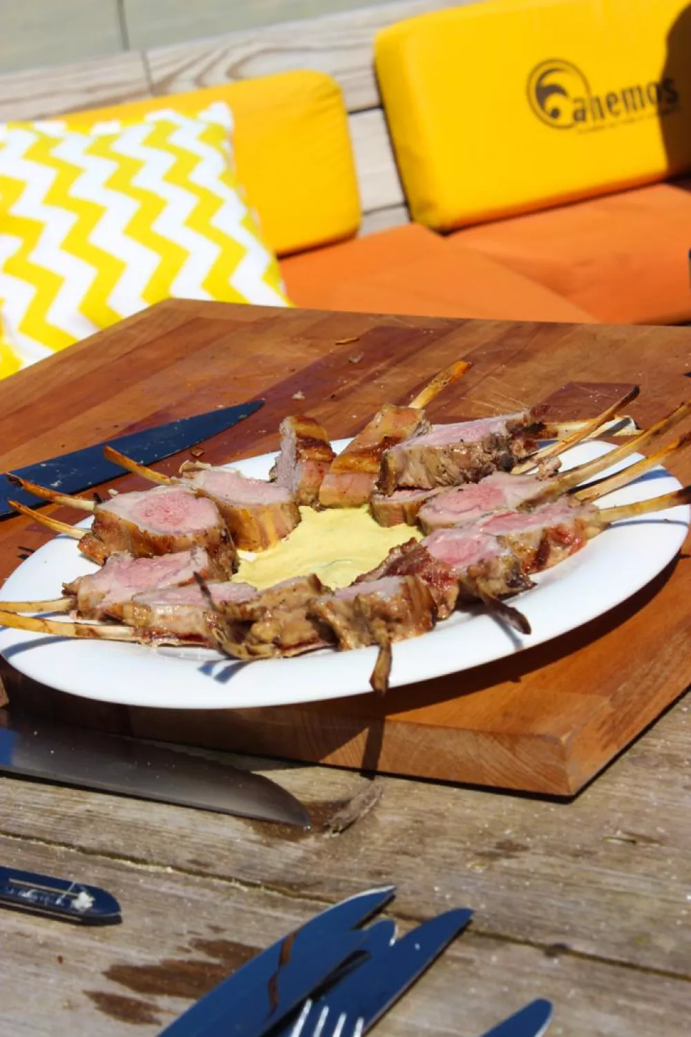 Zacht rosé lamscarré met romige currymayonaise combineert mediterrane kruiden en geurige Indiase specerijen voor een feestelijke barbecue. Ingesmeerd met een mengsel van knoflook, tijm en olijfolie en kort op hoge temperatuur gegrild blijft het vlees sappig en vol van smaak. De mayo met madras curry, kurkuma, yoghurt en een scheutje citroen geeft frisse kruidigheid en is ideaal voor zomeravonden en speciale diners.
