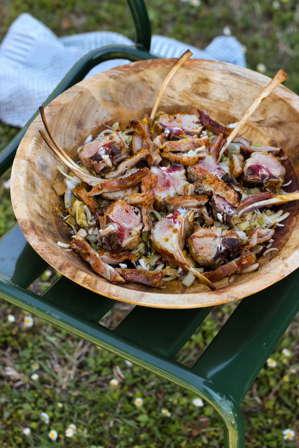Bestrijk het lamsvlees met olijfolie en kruid het met peper en zout. Grill het vlees op de barbecue.