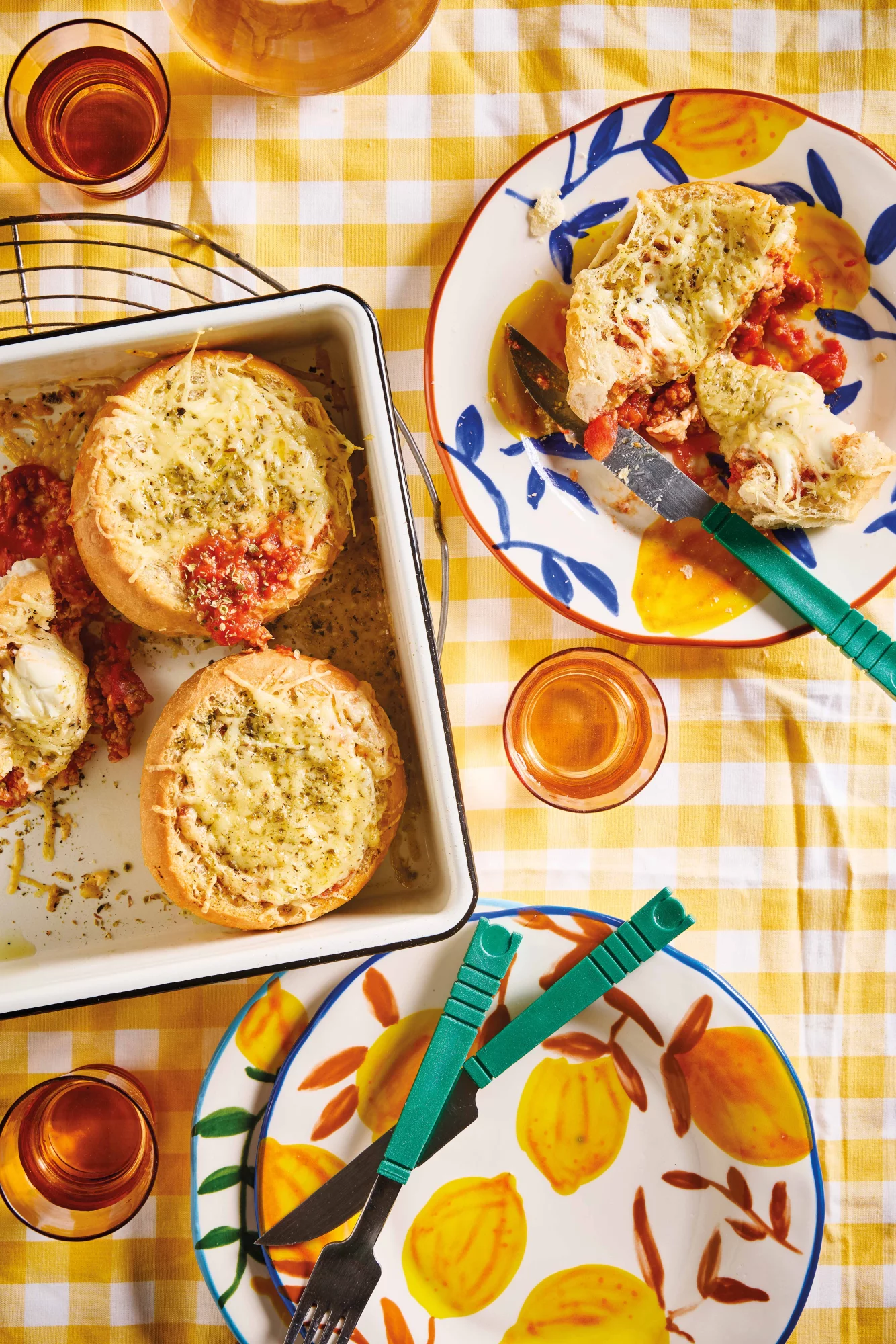 Bak de pistolets ongeveer 10 minuten in de oven tot de vulling goed heet is en de bovenkant goudbruin gesmolten is.