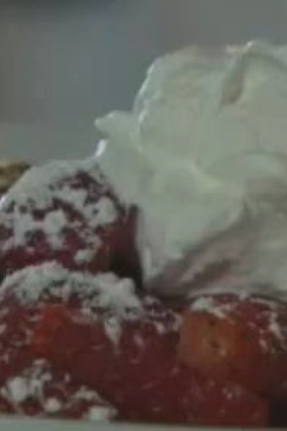 Serveer de pannenkoeken met de opgeslagen room en aardbeien.
