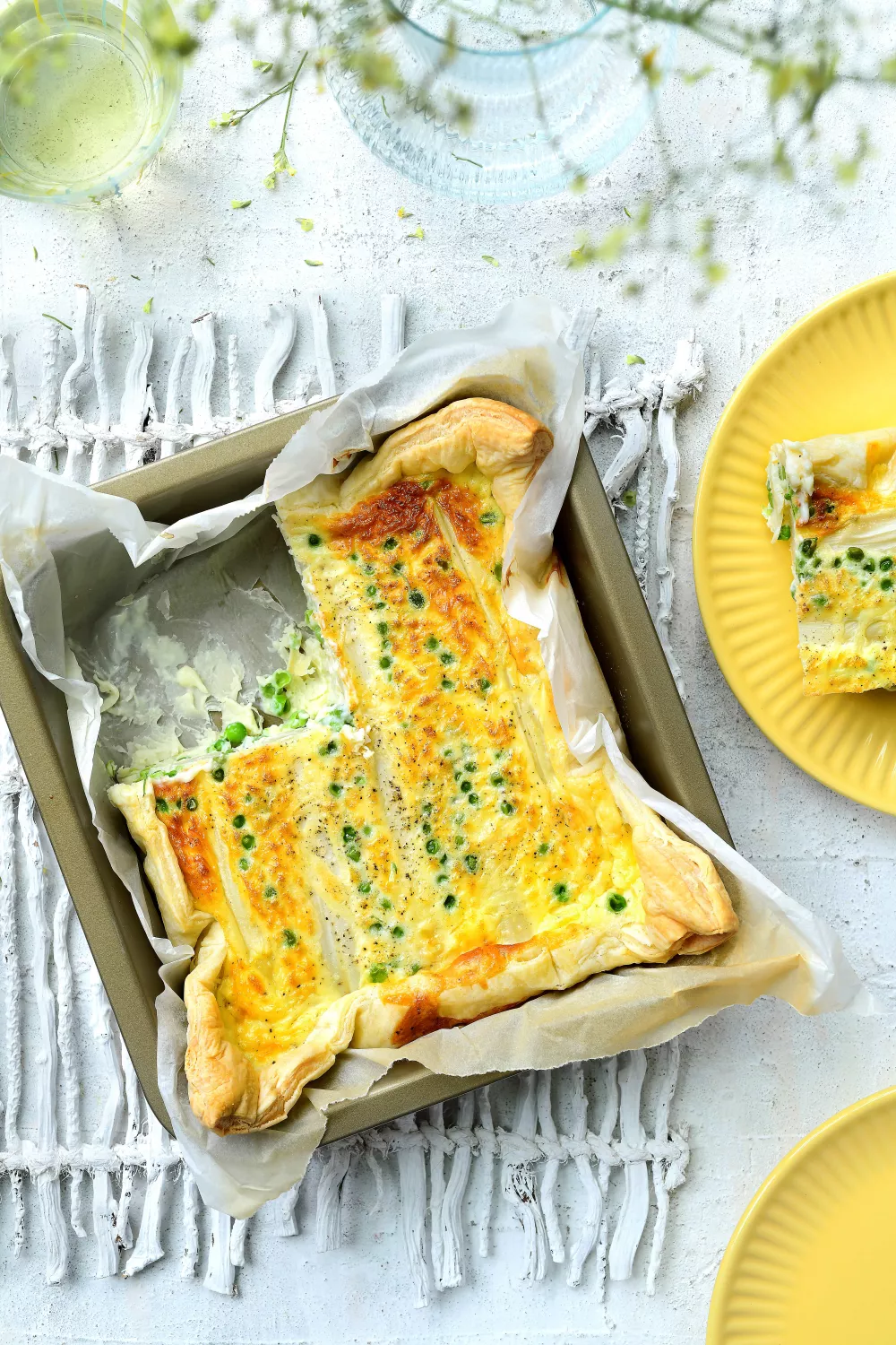 Lentequiche met asperges en erwtjes