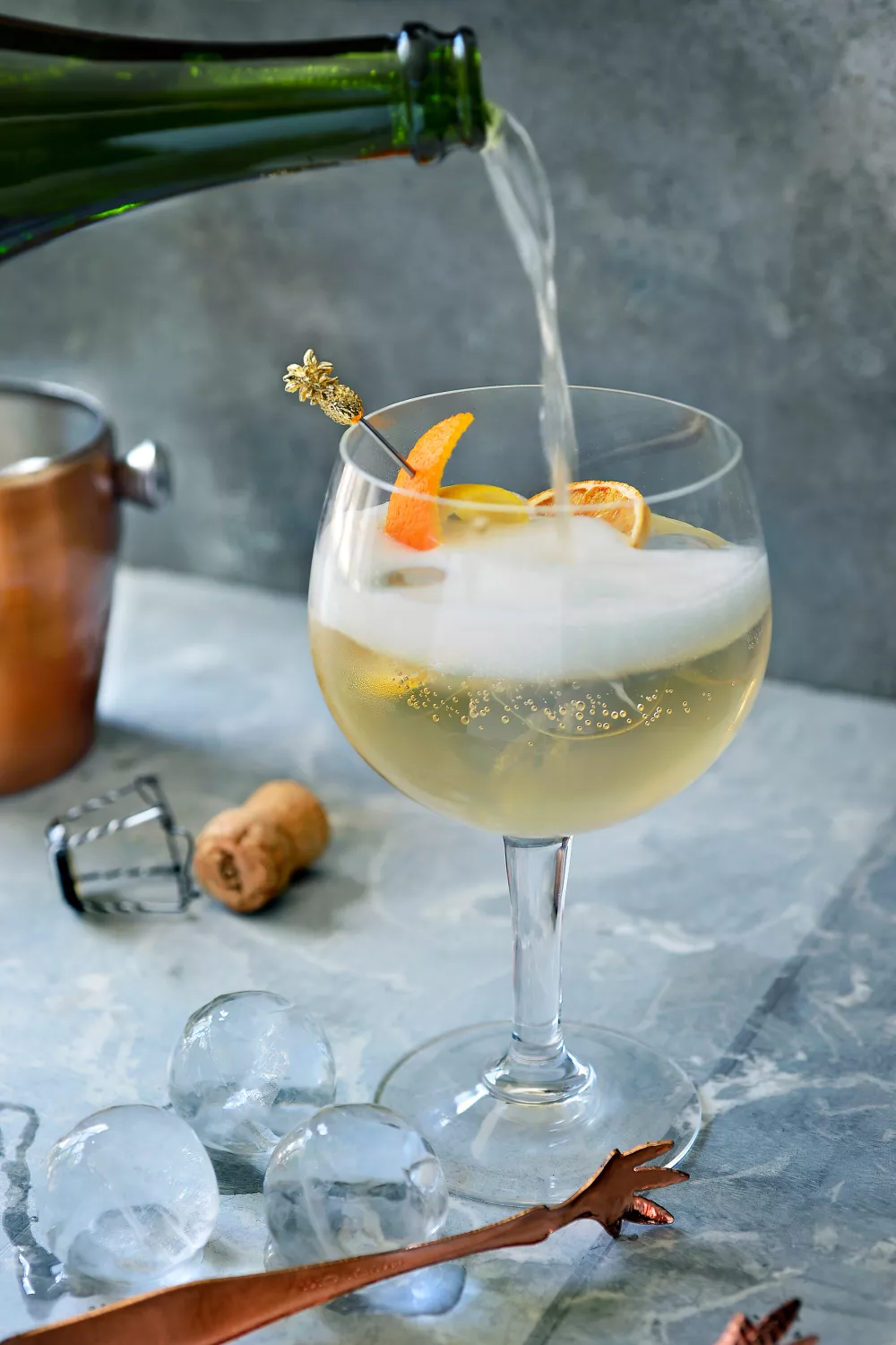Een frisse, sprankelende aperitiefcocktail met Lillet blanc of rosé, schuimwijn en bruiswater die perfect past bij zonnige dagen, borrels en lichte lunches. Vul een groot wijnglas met ijs en giet eerst de Lillet erin gevolgd door bruiswater en schuimwijn voor een verfijnde, luchtige mix. Werk af met een schijfje sinaasappel of citroen voor een fruitige touch en een feestelijke uitstraling.
