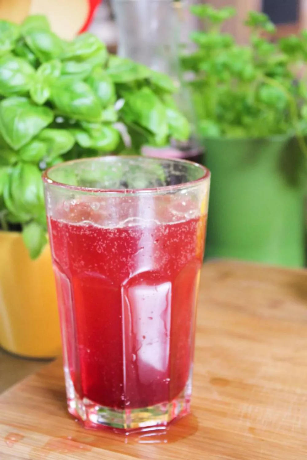Laat de basissiroop afkoelen. Maak de limonade door een flinke scheut van de siroop in een glas te mengen met een snuifje zout en aan te lengen met spuitwater.