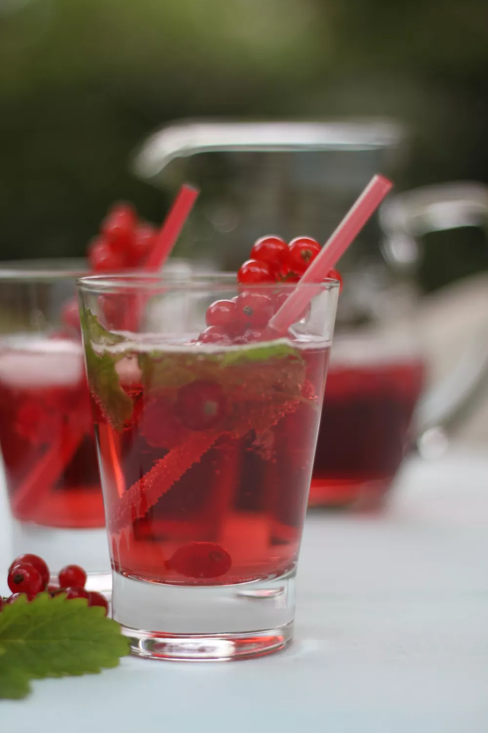 Deze sprankelende limonade van rode besjes met citroenmelisse is een frisse zomerdrank vol fruitige zoetheid en kruidige frisheid. Meng siroop van rode besjes met soda, voeg ijs en een handje citroenmelisse toe en schenk in een kan voor een picknick, barbecue of luie middag in de tuin. Garneer met een takje rode besjes voor kleur en extra smaak.