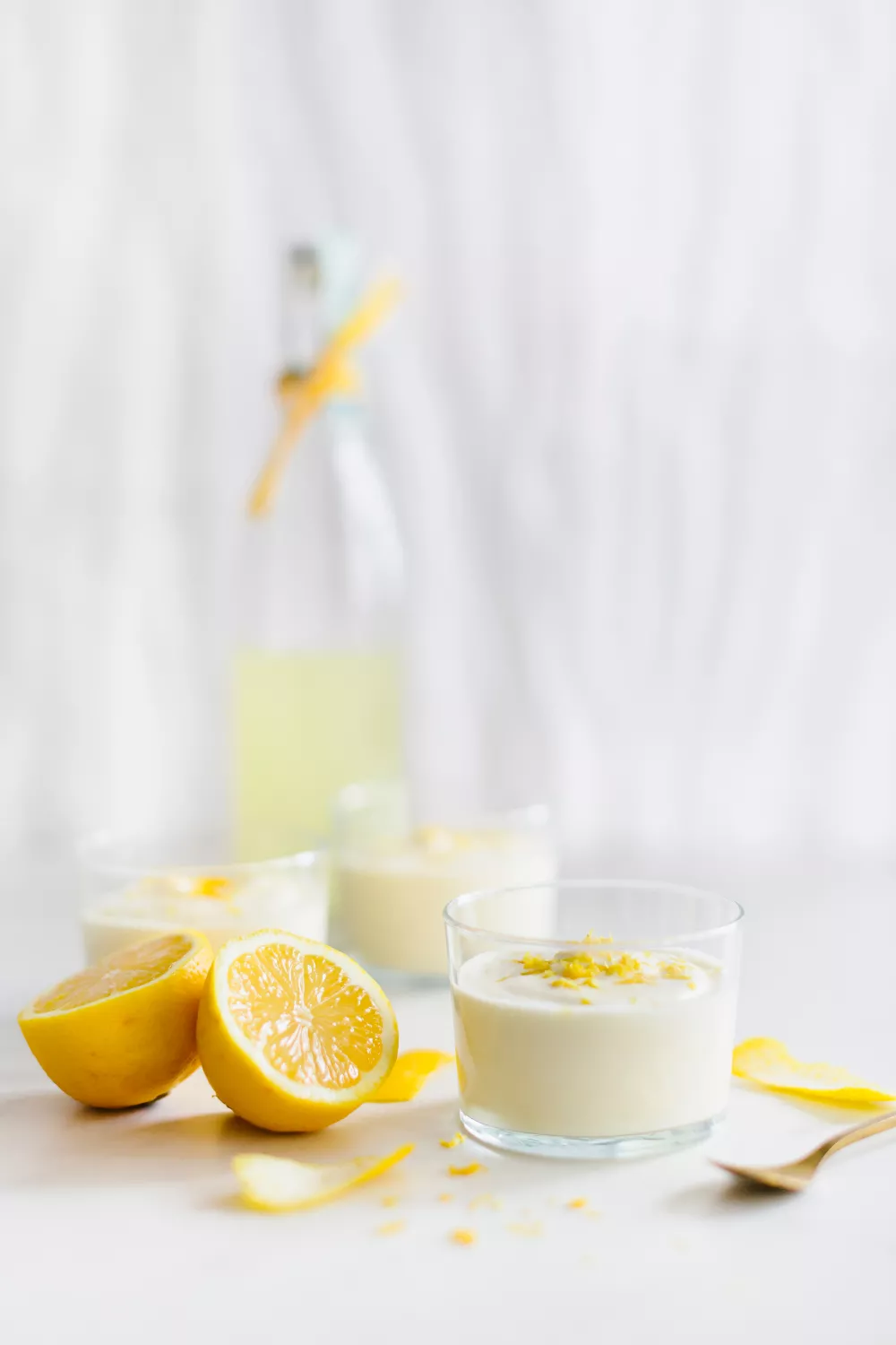 Werk de glaasjes net voor het serveren af met een beetje zeste van citroen.