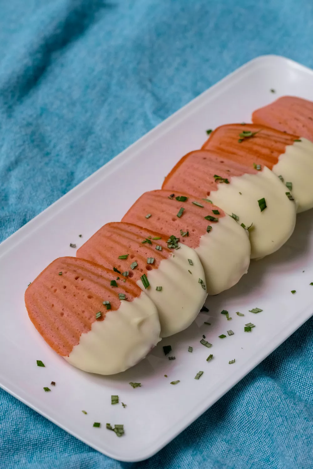 Knapperige madeleintjes met zachte Hoogstraten aardbeien en een subtiele toets rozemarijn, afgewerkt met een laagje witte chocolade voor extra zoetheid. De rozemarijn wordt in gesmolten boter getrokken en de aardbeien tot een puree gemixt, waarna het luchtige beslag in klassieke madeleinevormpjes wordt gebakken. Ideaal als lente of zomers gebak bij koffie of als verfijnd dessert voor feestelijke gelegenheden.