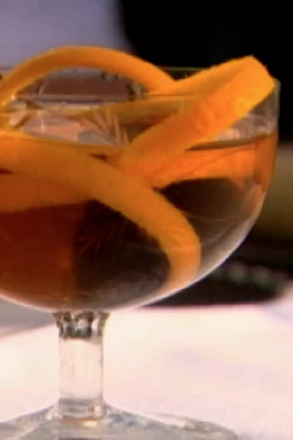 Werk af met een cocktailkers en de zeste van een sinaasappel.