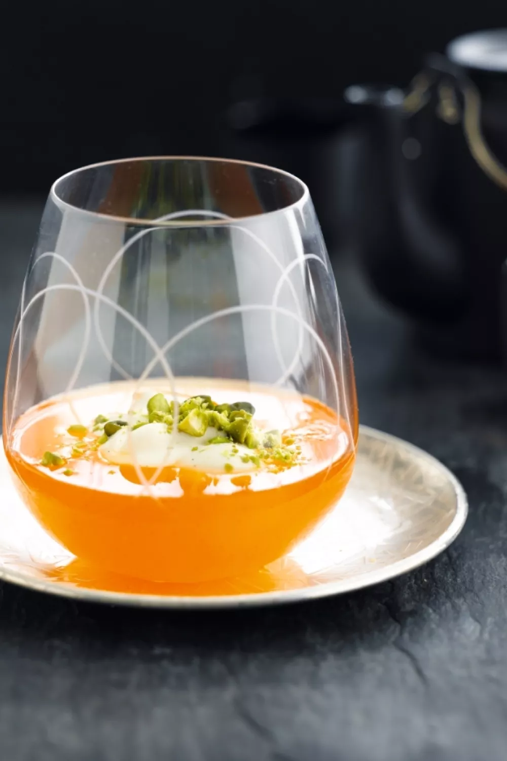 Frisse mandarijnjelly met een zachte Aperoltoon is een feestelijk dessert of borrelhapje voor zonnige dagen, vol citrus, vanille en een tikkeltje bitterzoet. Je perst het sap van verse mandarijnen en verwarmt dit met vanille, suiker en gelatine tot het soepel oplost, waarna de jelly in de koelkast opstijft. Werk af met een lepel zure room en knapperige pistachenoten voor contrast en een elegante presentatie.