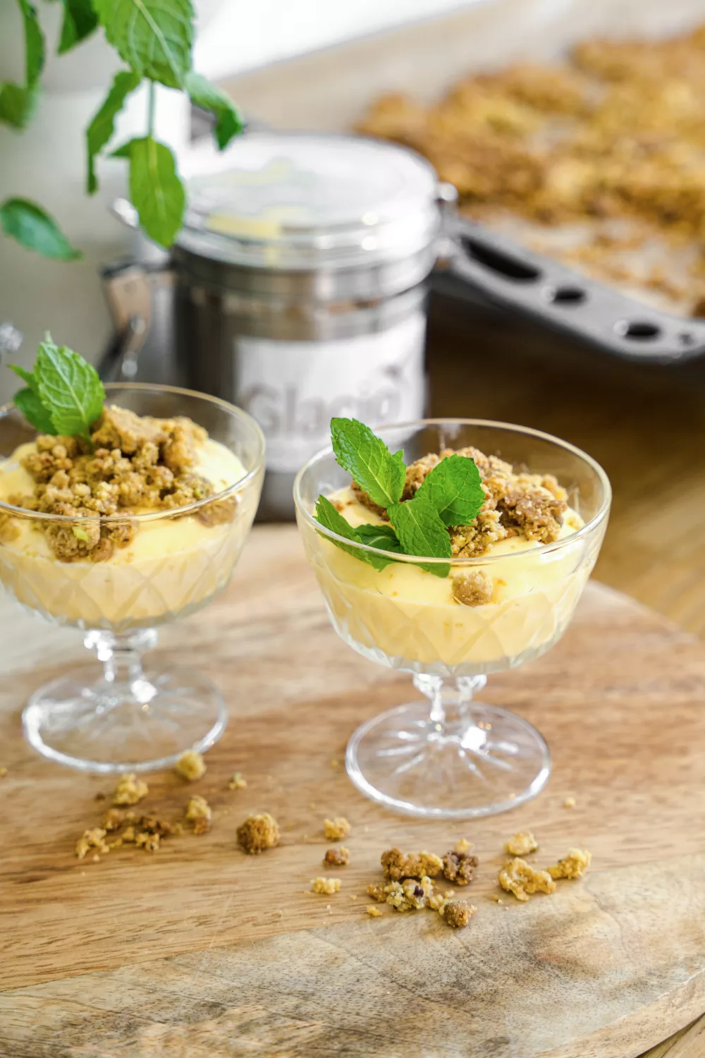 Mango froyo met pistache crumble
