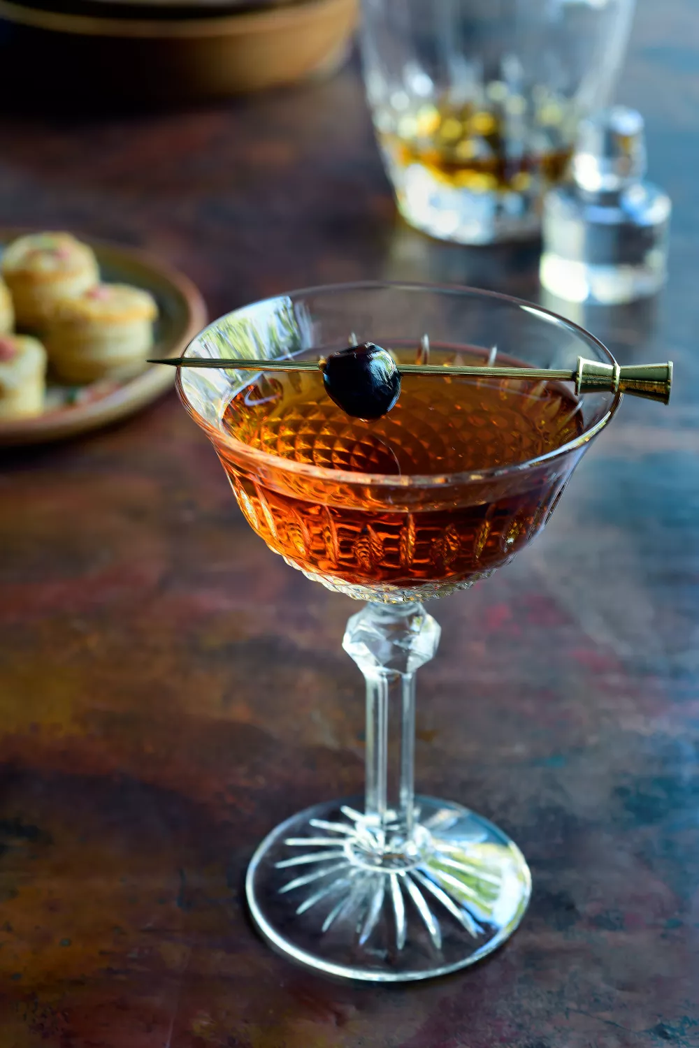 De Manhattan is een klassieke cocktail met stevige rye whiskey en kruidige rode vermout, subtiel opgefrist met een paar druppels orange bitters. Door te roeren met ijs ontstaat een elegant, zacht gekoeld drankje met precies de juiste verdunning, ideaal als aperitief of bij een chique diner. Serveer in een coupe en werk af met een maraschinokers voor een tijdloze presentatie.