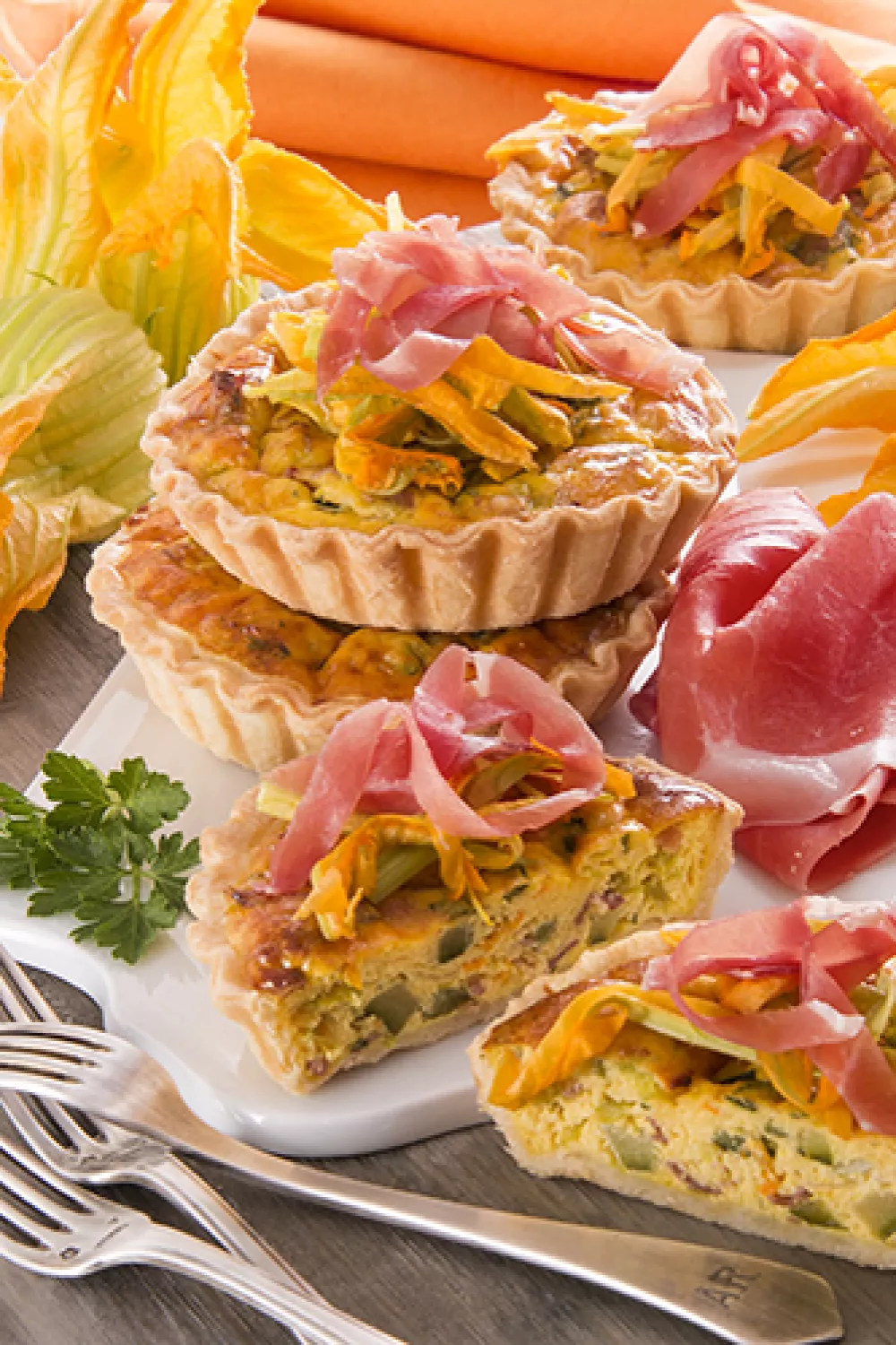 Stappenplan om recept “Mini-quiches met pompoenbloemen en Parmaham” te bereiden