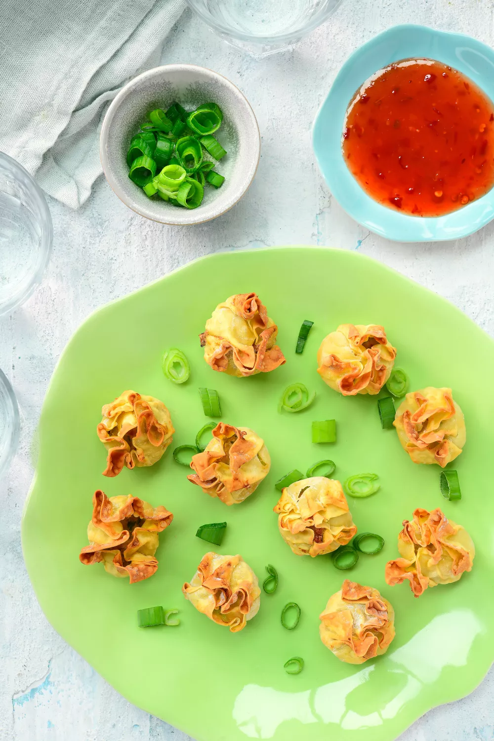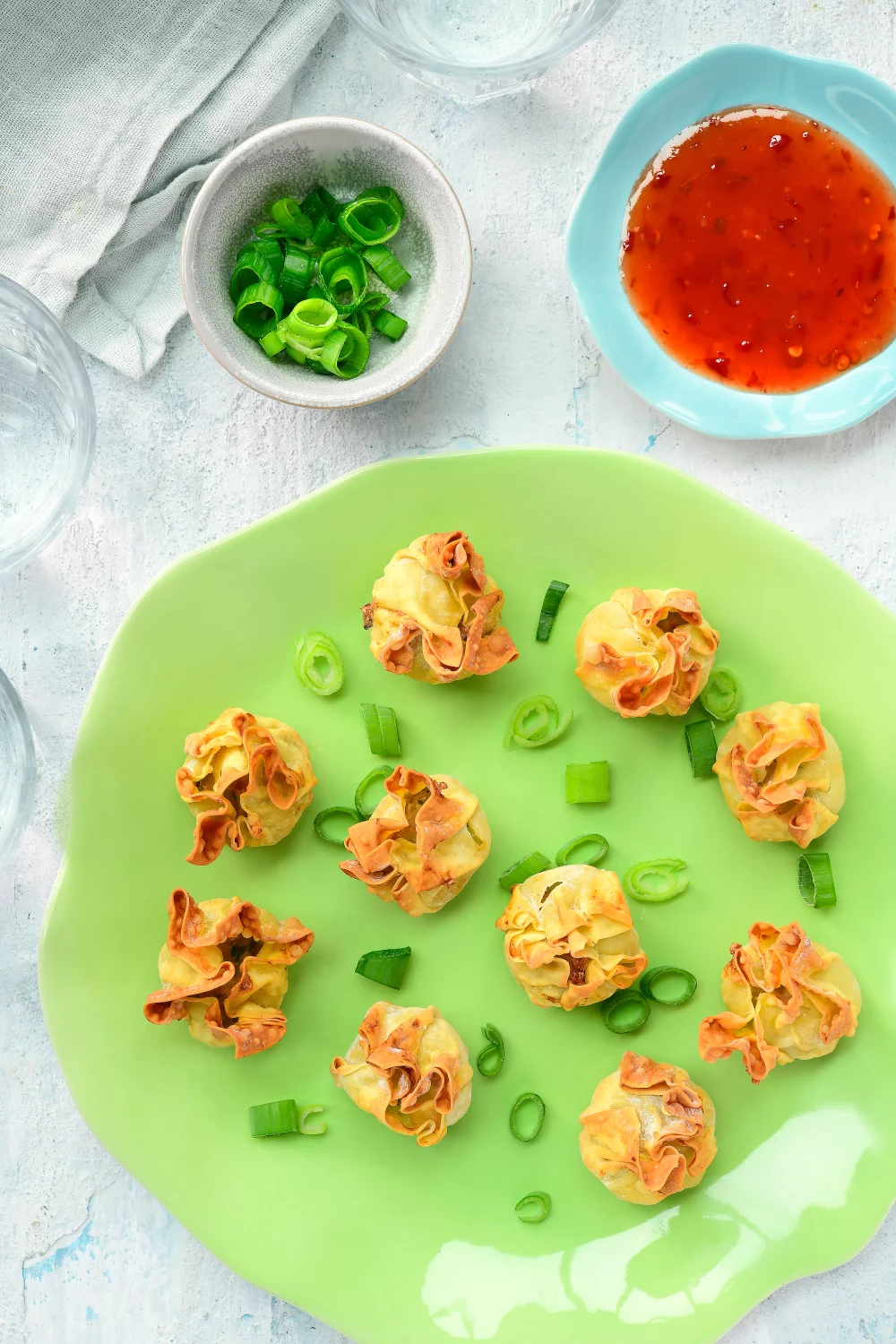 Deze money bags in de airfryer zijn het perfecte hapje voor een feestje, aperitief of Aziatisch geïnspireerde maaltijd. Krokante wontonzakjes gevuld met een smaakvolle mix van varkensgehakt, scampi, hoisinsaus, gember en chili zorgen voor een onweerstaanbare combinatie van hartig, zoet en pittig. Dankzij de airfryer zijn ze snel klaar en heb je nauwelijks olie nodig. Serveer met zoetzure saus en je hebt in een handomdraai een echte crowdpleaser.