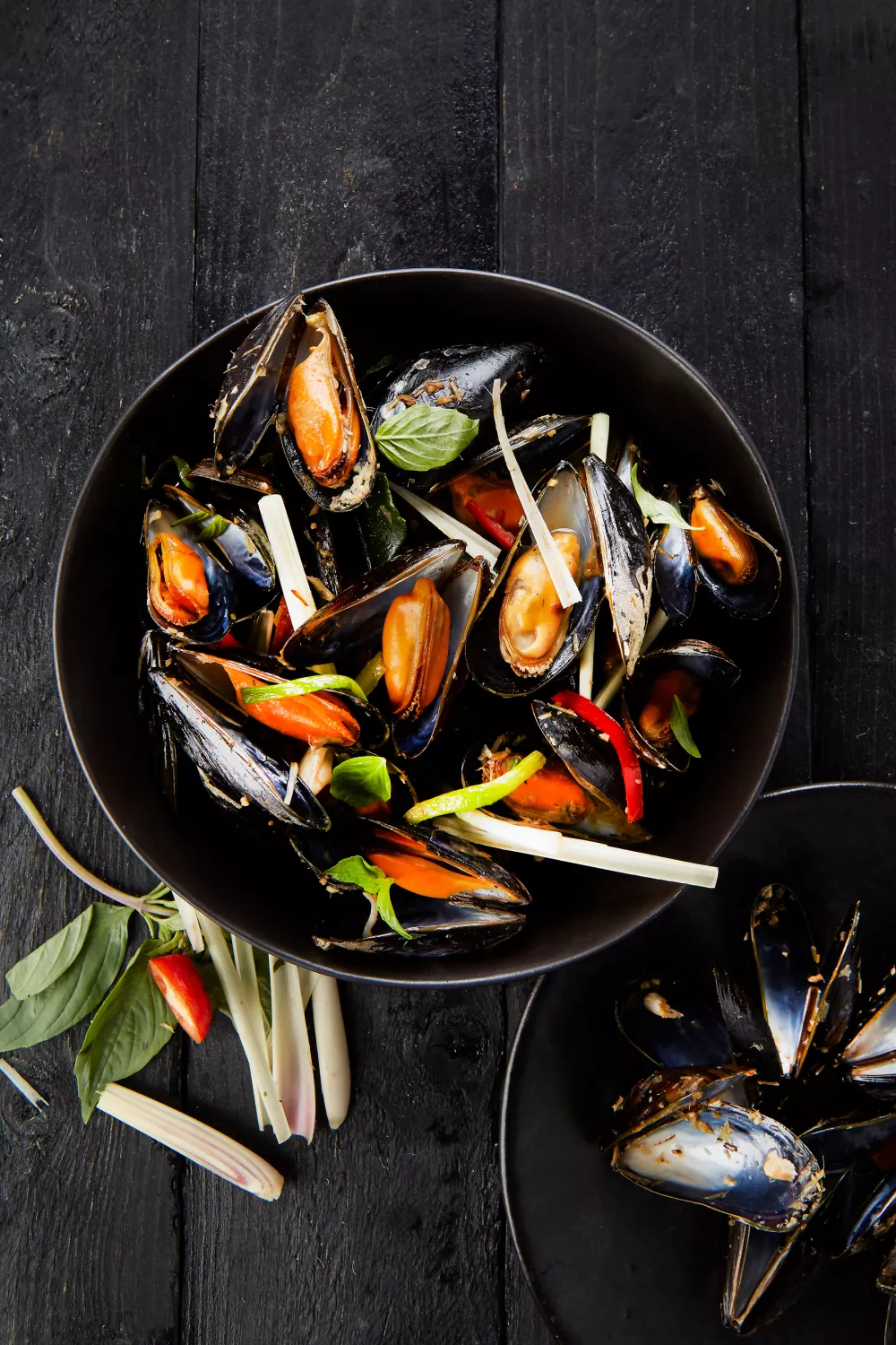 Mosselen met citroengras en look