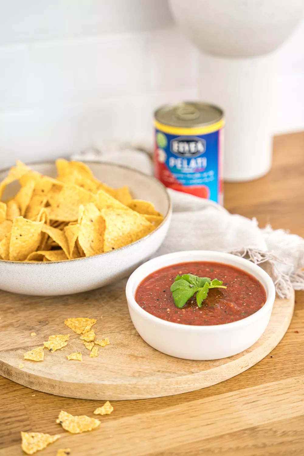 Frisse tomatensalsa met knoflook, rode ui, koriander en een vleugje limoen die in luttele minuten in de blender klaar is. De zachte Elvea pelati gecombineerd met pittige chili en een snufje suiker zorgt voor een aromatische, lichtzoete dip bij krokante nacho's. Perfect als snelle borrelhap of zomerse snack voor feestjes en tapasavonden.