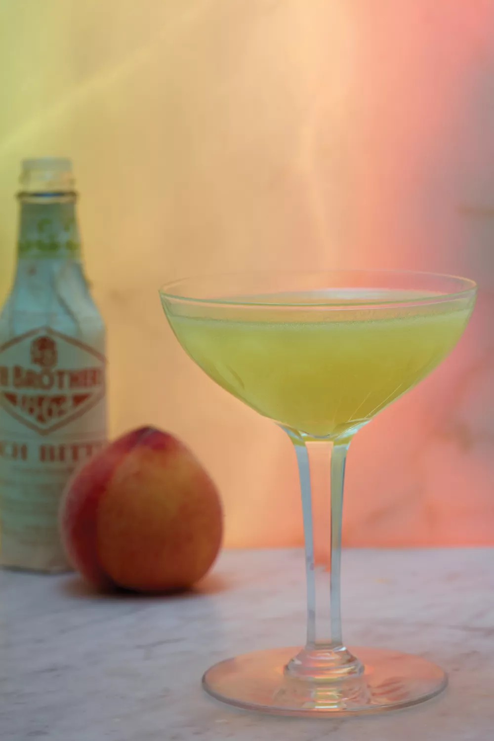 “Once you drink Strega together, you will never drink it apart.” Zo luidt het in de film Kitty Foyle, een Hollywoodklassieker uit de jaren 1940 met Ginger Rogers. Strega is een Italiaans digestief op basis van zeventig kruiden, waaronder munt en venkel. Hun frisheid geeft de zoete smaak van de perziken een extra dimensie. En de sappige perzik is uiteraard een afrodisiacum buiten categorie. Romantische plannen lukken beter met de juiste cocktail.