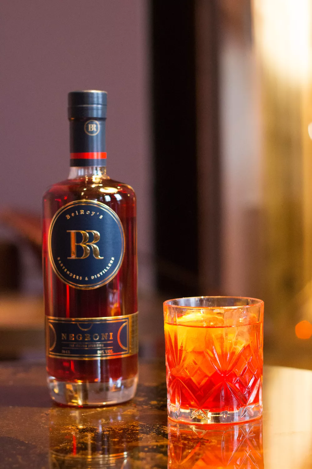 Een klassieke, bitterzoete Negroni met BelRoy's gin, rode vermouth en Campari, perfect als elegant aperitief of borrelcocktail bij een zomerse avond. Roer de mix in een gekoeld mixglas en zeef de cocktail in een Old Fashioned glas met verse ijsblokjes zodat hij een zijdeachtige textuur en precies de juiste verwatering krijgt. Een schijfje sinaasappel voegt een frisse citrusnoot toe die de bitters in balans brengt.