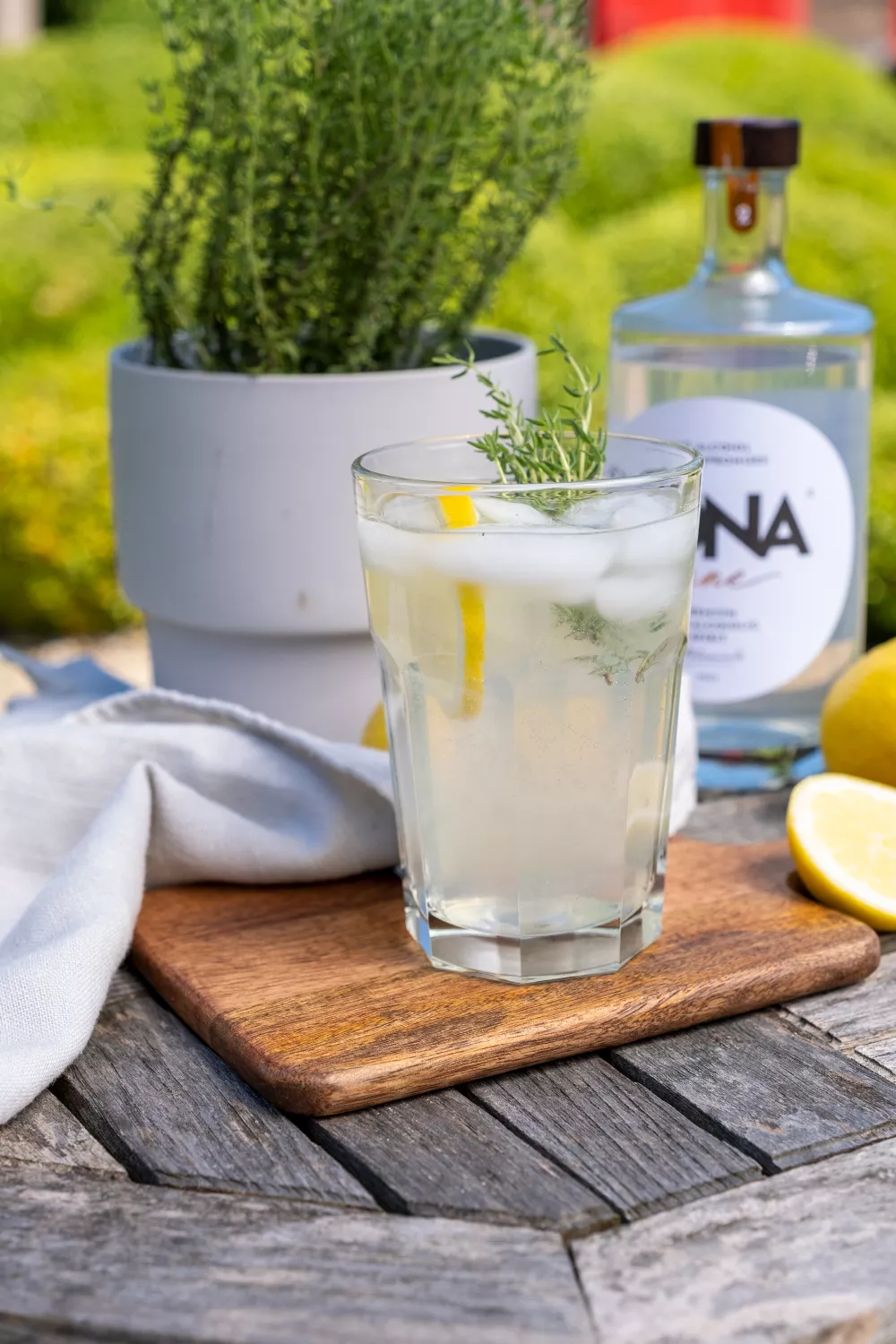 Een verfrissende alcoholvrije mocktail met Nona June, fris citroensap en een vleugje tijm, ideaal als zomers aperitief op het terras of bij een lichte brunch. De eenvoudige bereiding met ijsblokjes, suikersiroop en een topje bruisend sodawater geeft een licht bubbelende drink met kruidige tijm en frisse citroensmaak. Garneer met een schijfje citroen en een takje tijm voor een feestelijke presentatie.