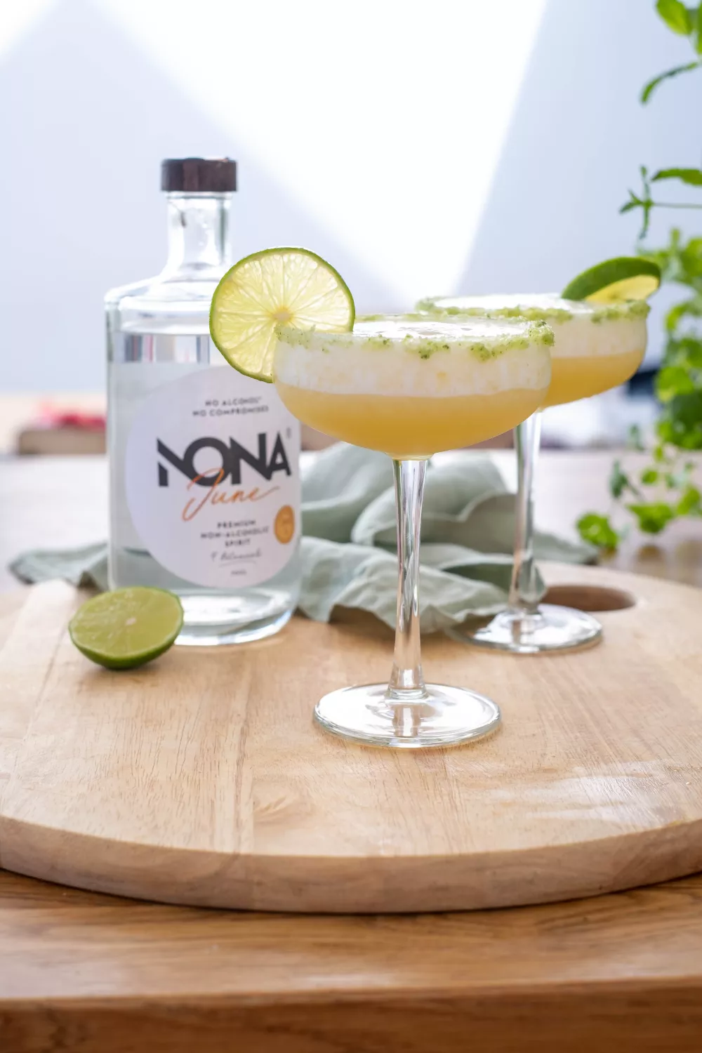 Deze tropische Nona Pineapple Smash is een verfrissende alcoholvrije mocktail met bevroren ananas, Nona June en vers limoensap, ideaal voor zomerse borrels, brunches of een zonnige afterwork. Munt en basilicum worden fijngestampt met kristalsuiker tot een aromatische kruidensuiker en in de blender meng je crushed ice, ananassap en suikersiroop tot een romige ijskoude textuur. Werk af met een schijfje limoen voor een feestelijke touch.