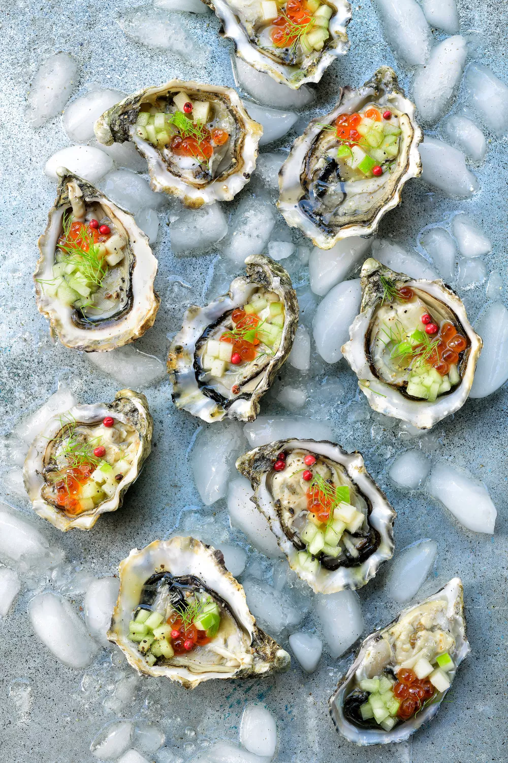 Oesters met komkommer en appel