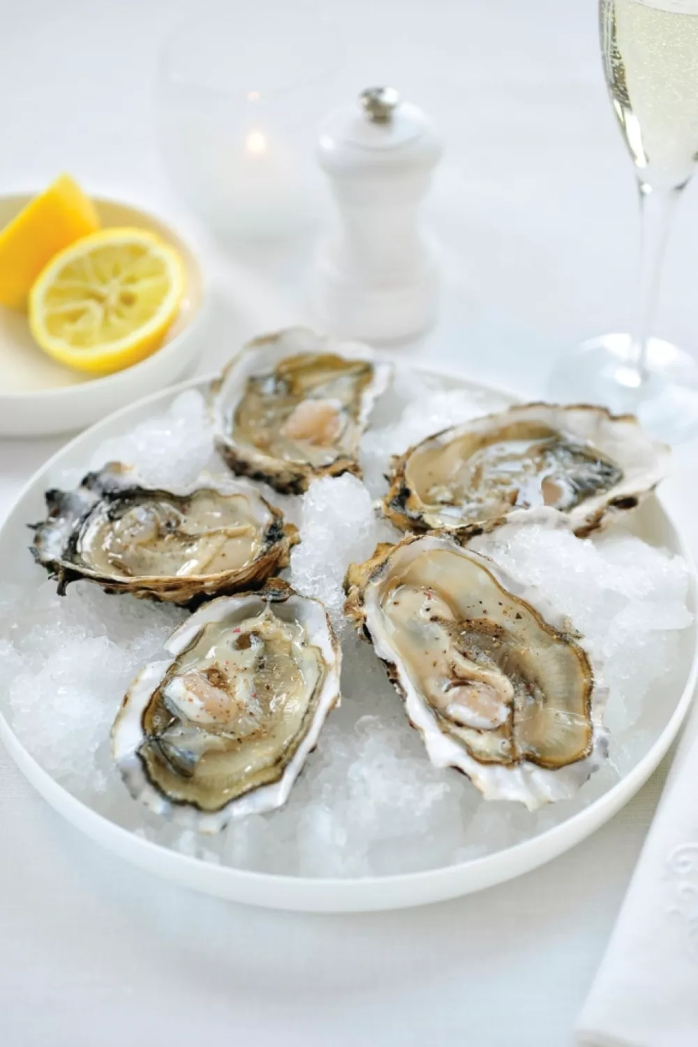 Serveer de oesters op geschaafd ijs en werk ze af met enkele druppeltjes citroensap en peper.
