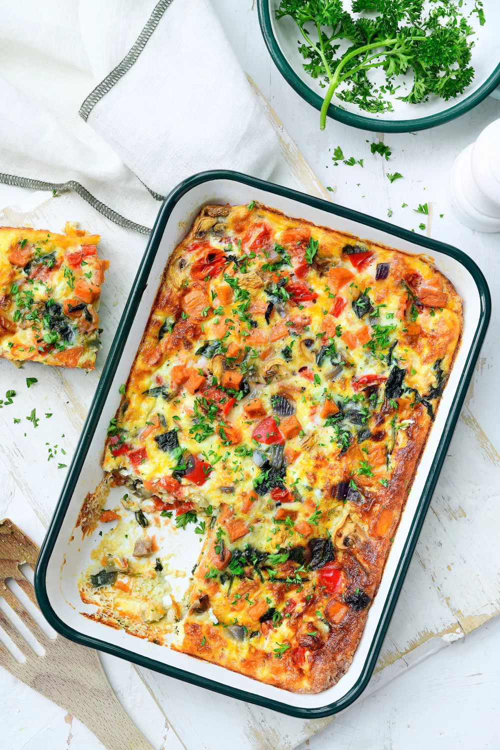 Deze hartige ontbijtschotel brengt zachte blokjes zoete aardappel samen met rode paprika, champignons, spinazie en romige mozzarella voor een kleurrijk en voedzaam ontbijt of weekendbrunch. De groenten worden kort gestoofd met een vleugje look en daarna overgoten met een luchtig eimengsel voordat alles in de oven goudbruin bakt. Ideaal voor herfstige ochtenden of wanneer je zin hebt in een gezond troostrijk gerecht.