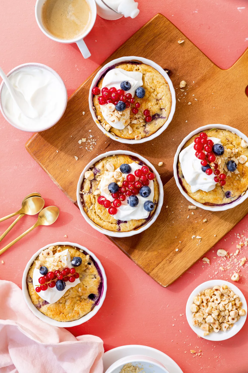 Deze ontbijttaartjes met plattekaas zijn het perfecte gezonde ontbijtje om je dag goed te starten. Ze zijn rijk aan proteïnen, gevuld met sappige blauwe bessen en afgewerkt met frisse yoghurt, seizoensfruit en krokante hazelnoten. Ideaal voor een snel ontbijt, mealprepping of een voedzame weekendbrunch!