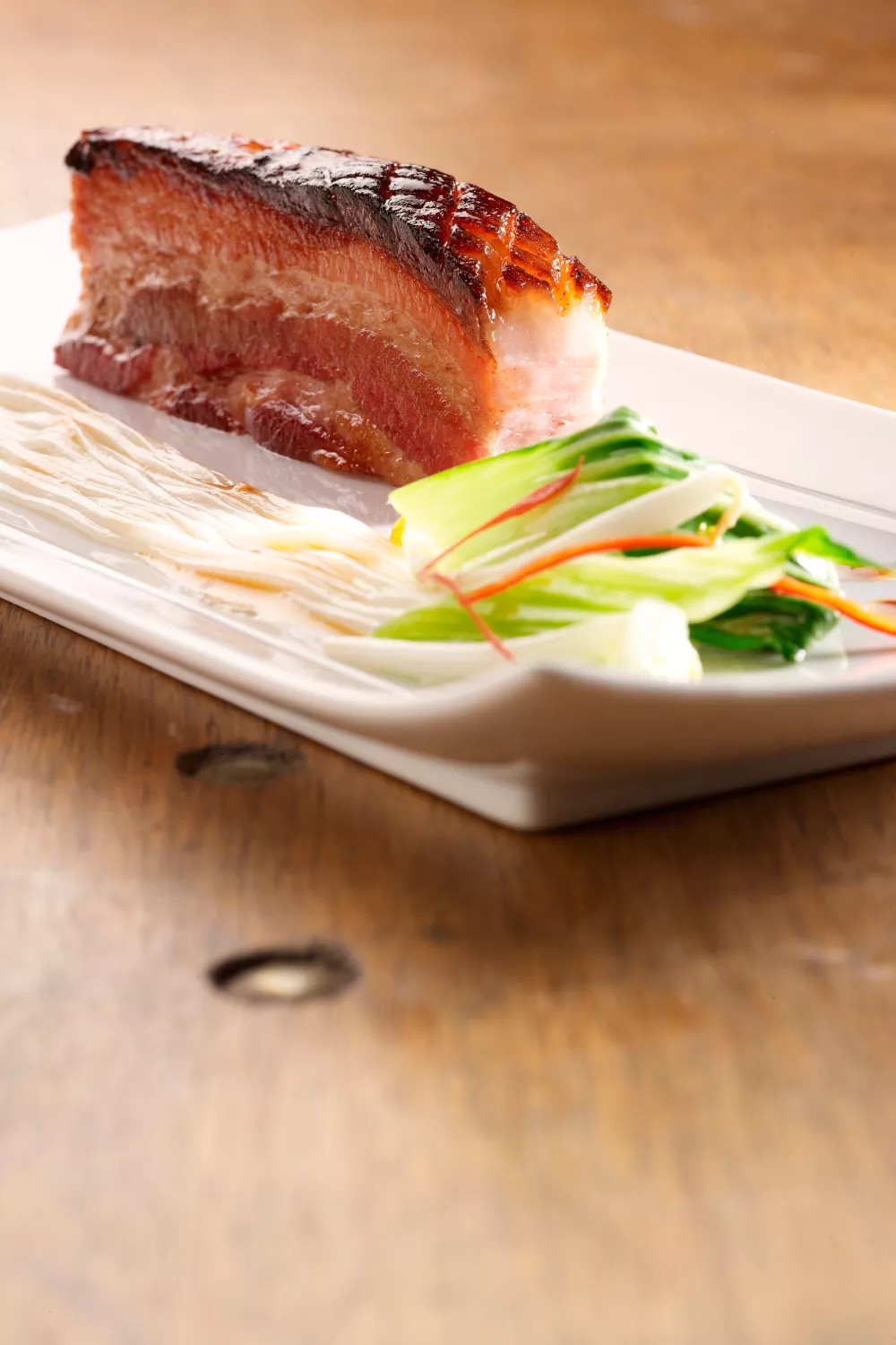 Zacht gegaard buikspek op lage temperatuur met een knapperige karamellaag en Aziatische toetsen van vijfkruiden en honing. Na kort aanbraden en urenlang zacht garen karamelliseert de buitenkant in de oven en ontstaat er een rijke mix van umami en zoetheid. Serveer met snel gewokte paksoi, sojascheuten en rijstnoedels voor een hartige, kruidige maaltijd die perfect past bij een gezellig etentje in de herfst.