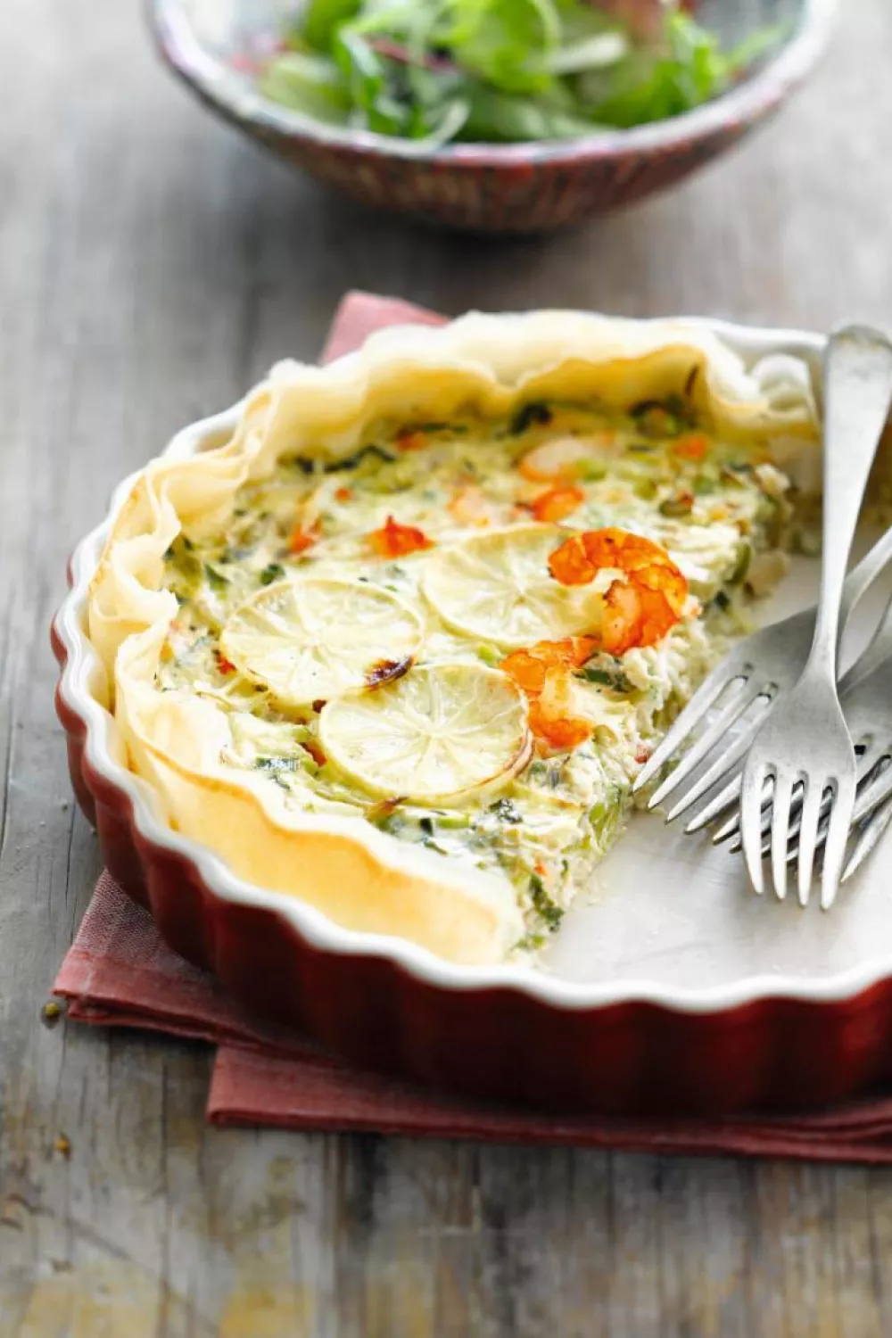 Stappenplan om recept “Oosterse quiche met scampi” te bereiden