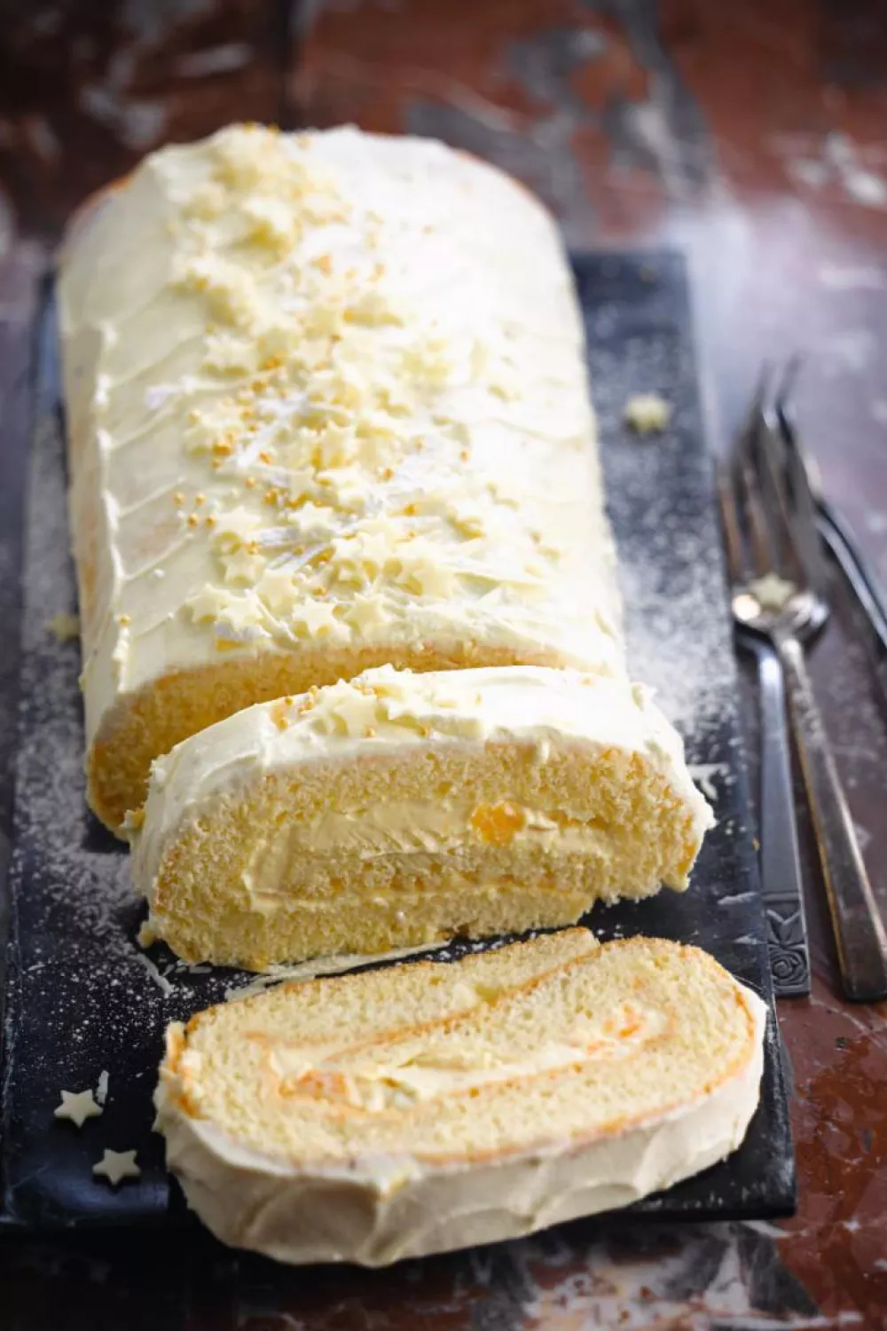 Zacht en luchtig biscuit gevuld met romige mascarpone en een vleugje advocaatlikeur, opgefrist met sappige mandarijnstukjes en rasp. Deze feestelijke opgerolde cake combineert het bakken van een dunne biscuit met het oprollen van de vulling en het koelen in de koelkast voor een smeuïge roulade. Perfect als dessert bij winterse bijeenkomsten of als elegant toetje bij een feestelijk diner.