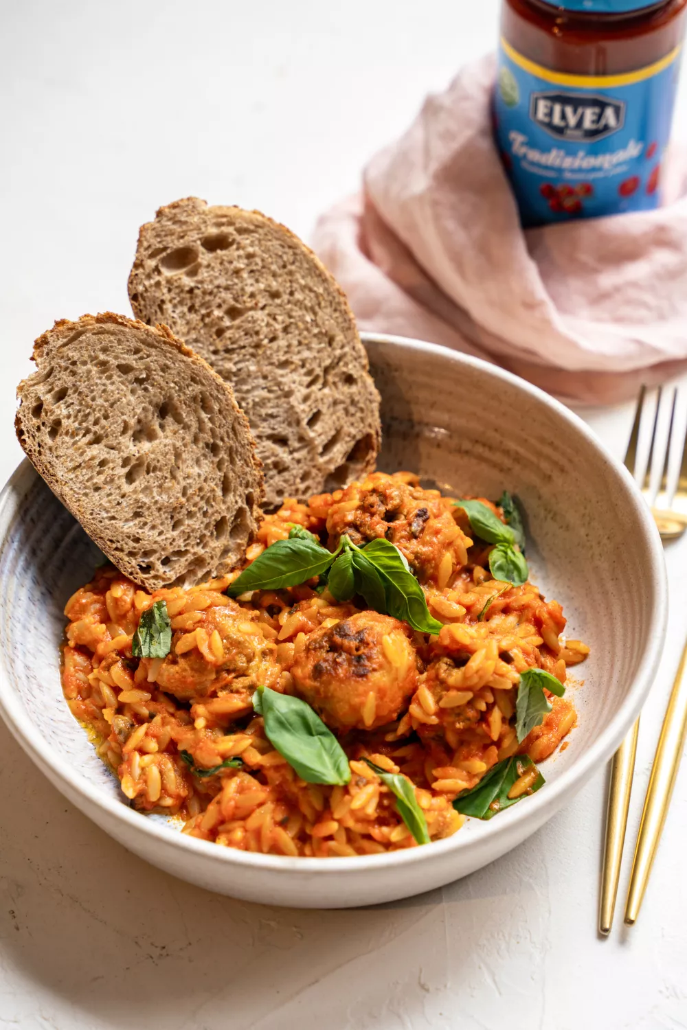 Stappenplan om recept “Orzo met tomatensaus en kaasballetjes” te bereiden