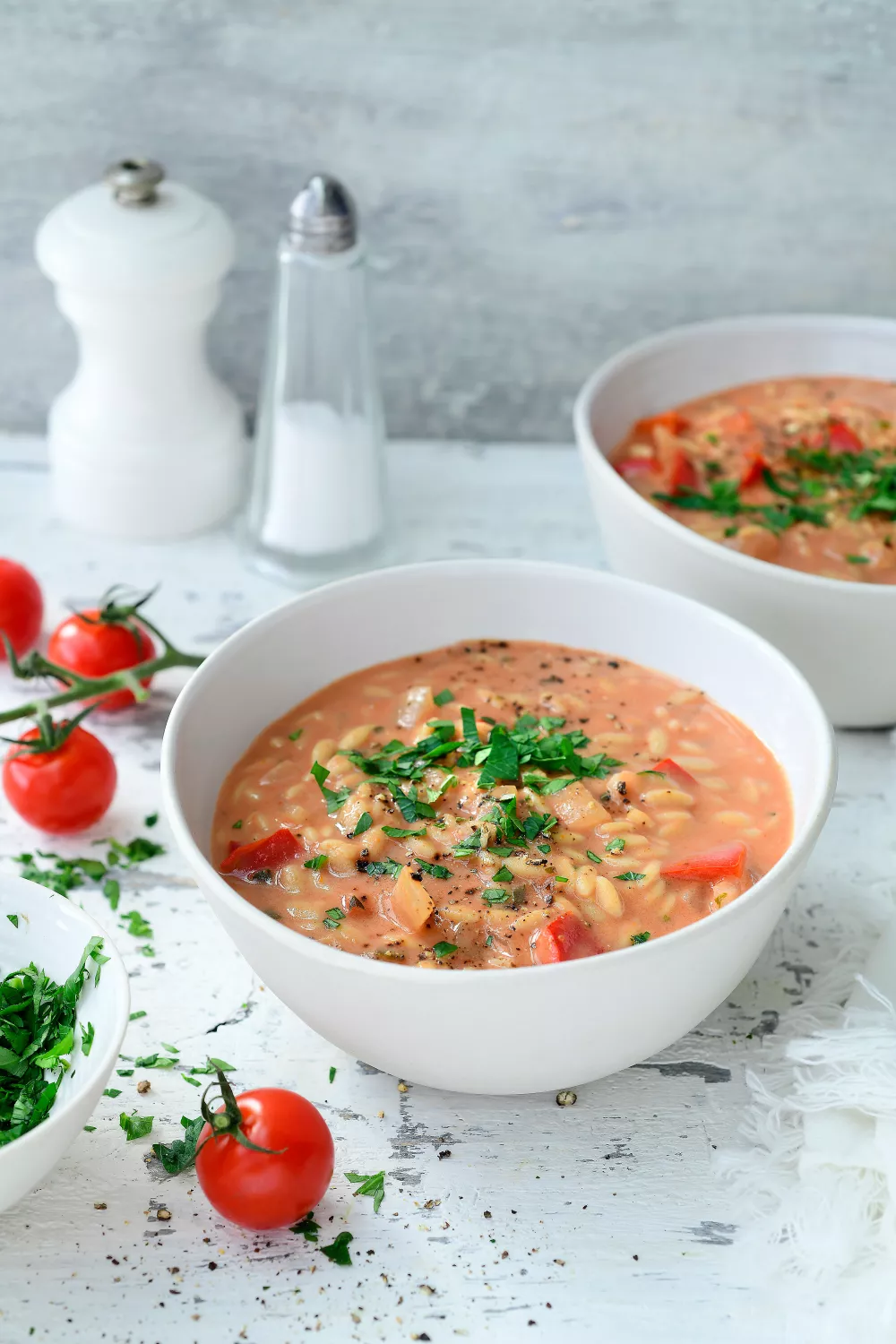 Stappenplan om recept “Orzo soep met paprika en tomaat” te bereiden