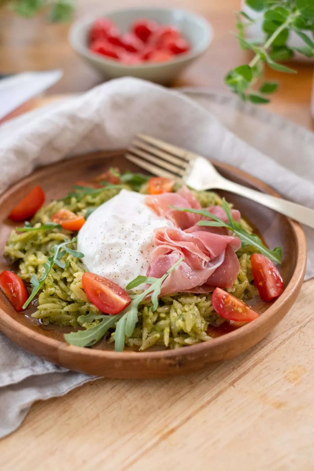 Stappenplan om recept “Orzotto met pesto, burrata en Parmaham” te bereiden