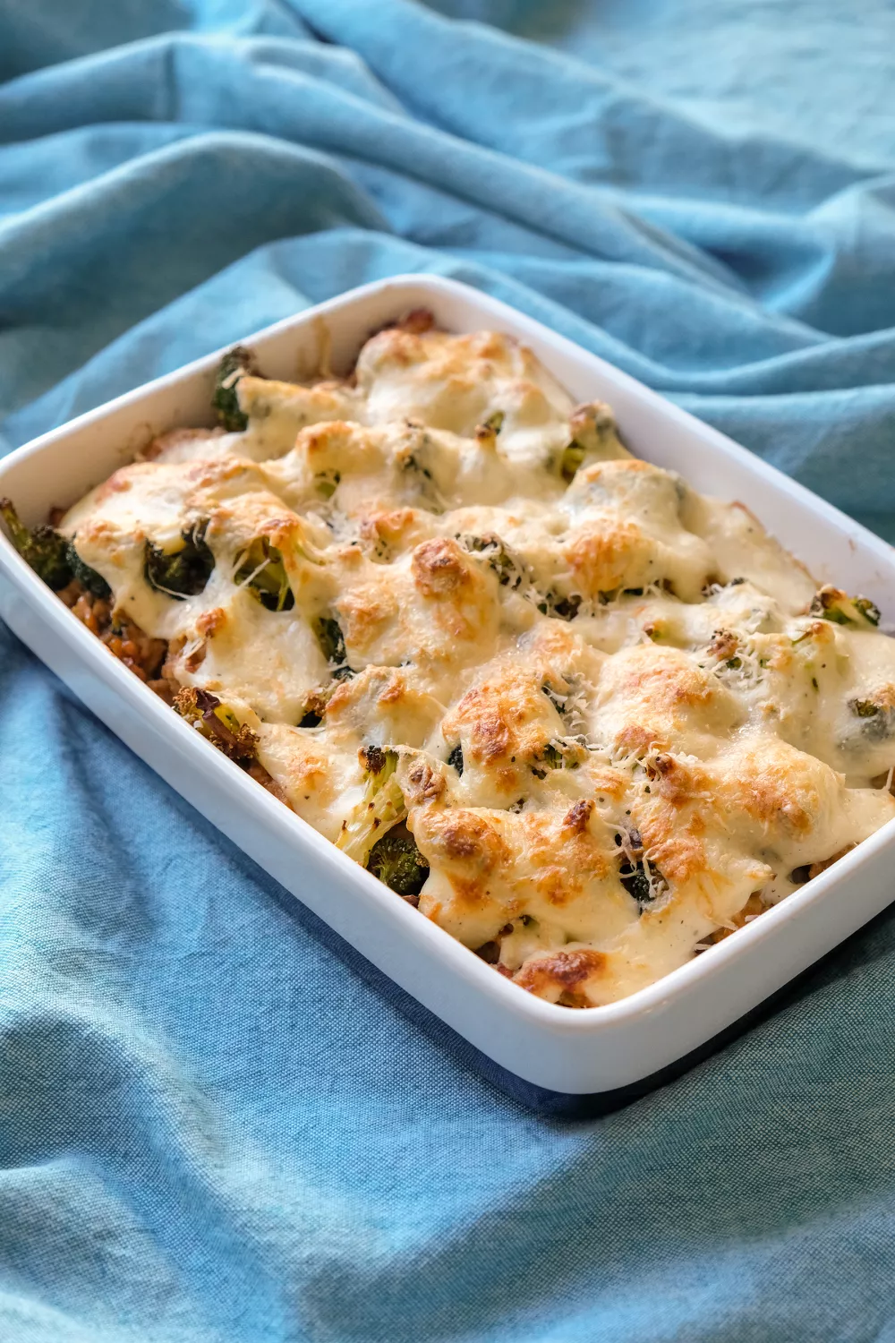 Deze hartige quinoa ovenschotel combineert knapperig geroosterde broccoli met sappig kippengehakt en een romige bechamelsaus op een bed van in kippenbouillon gegaarde quinoa. Afgewerkt met een goudbruin korstje van Parmezaanse kaas is het een troostrijk, voedzaam familiemaal dat je eenvoudig in de oven klaarmaakt. Ideaal voor doordeweekse avonden in herfst en winter of wanneer je zin hebt in een rijk en eiwitrijk groentegerecht.
