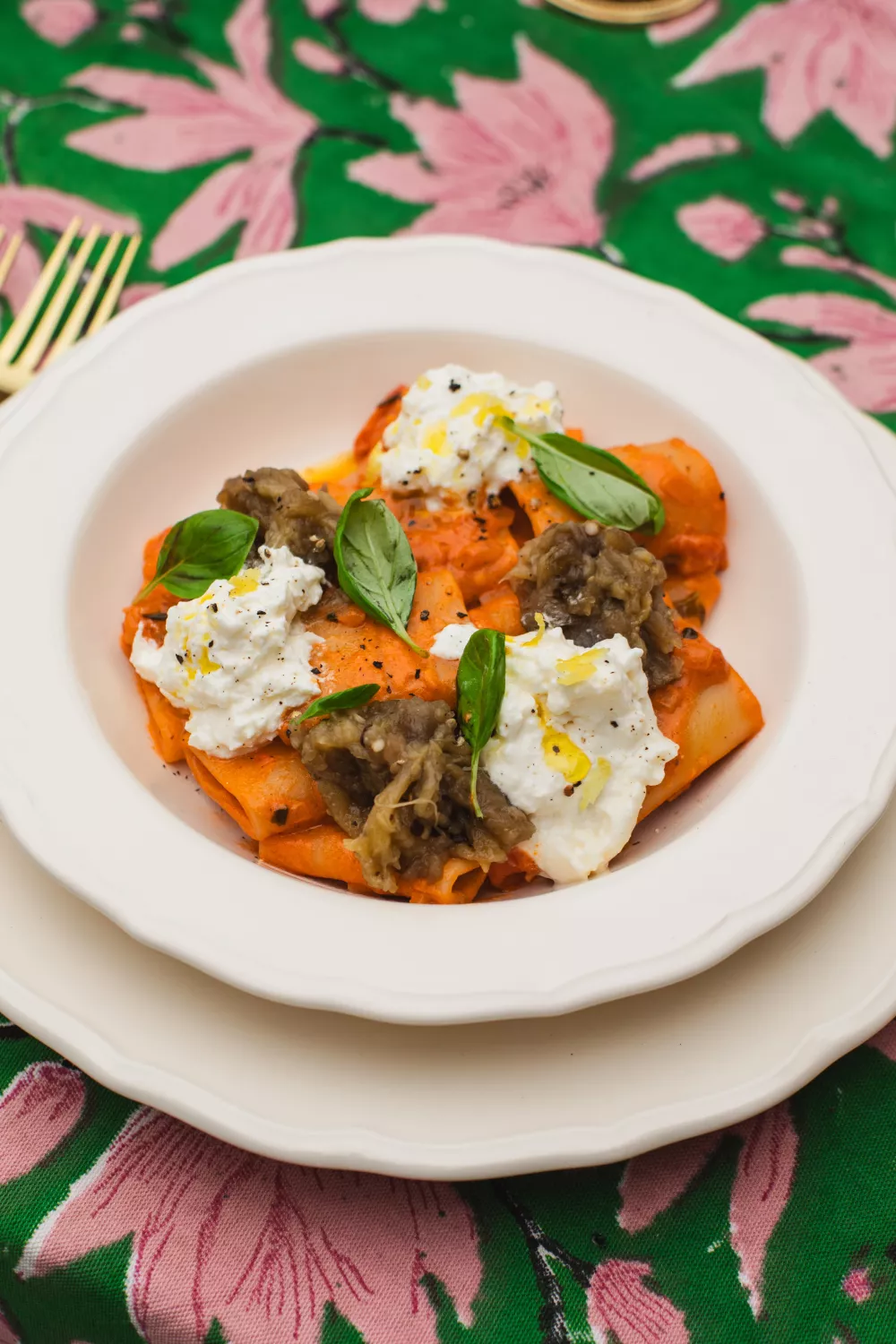 Stappenplan om recept “Paccheri met tomaat, burrata en gerookte aubergine” te bereiden