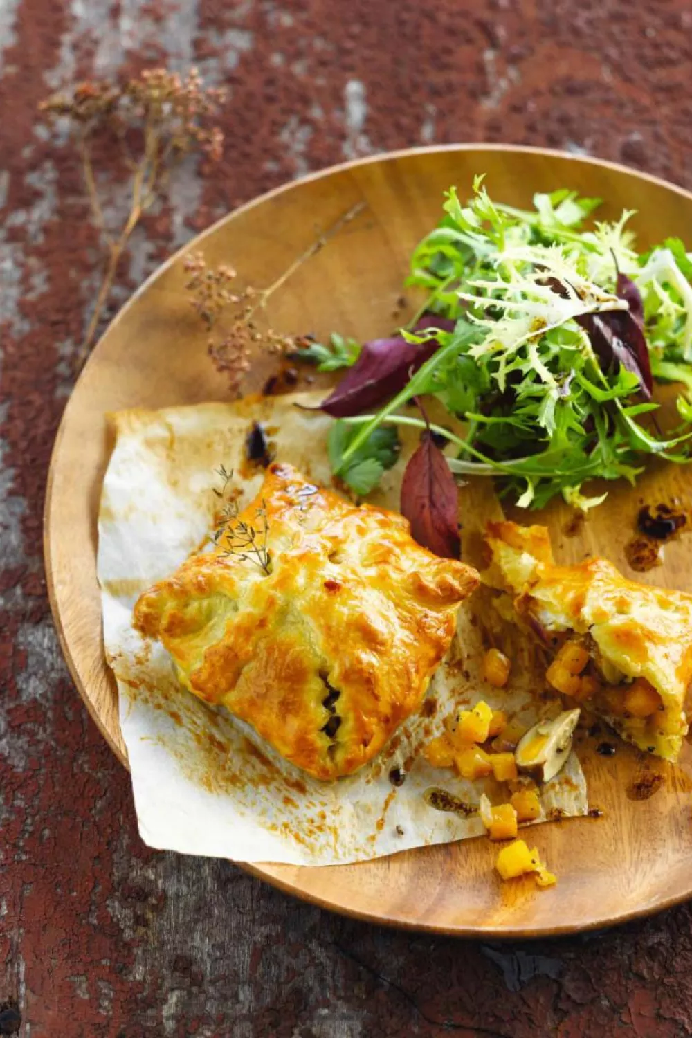 Serveer de pakketjes met een herfstsalade.