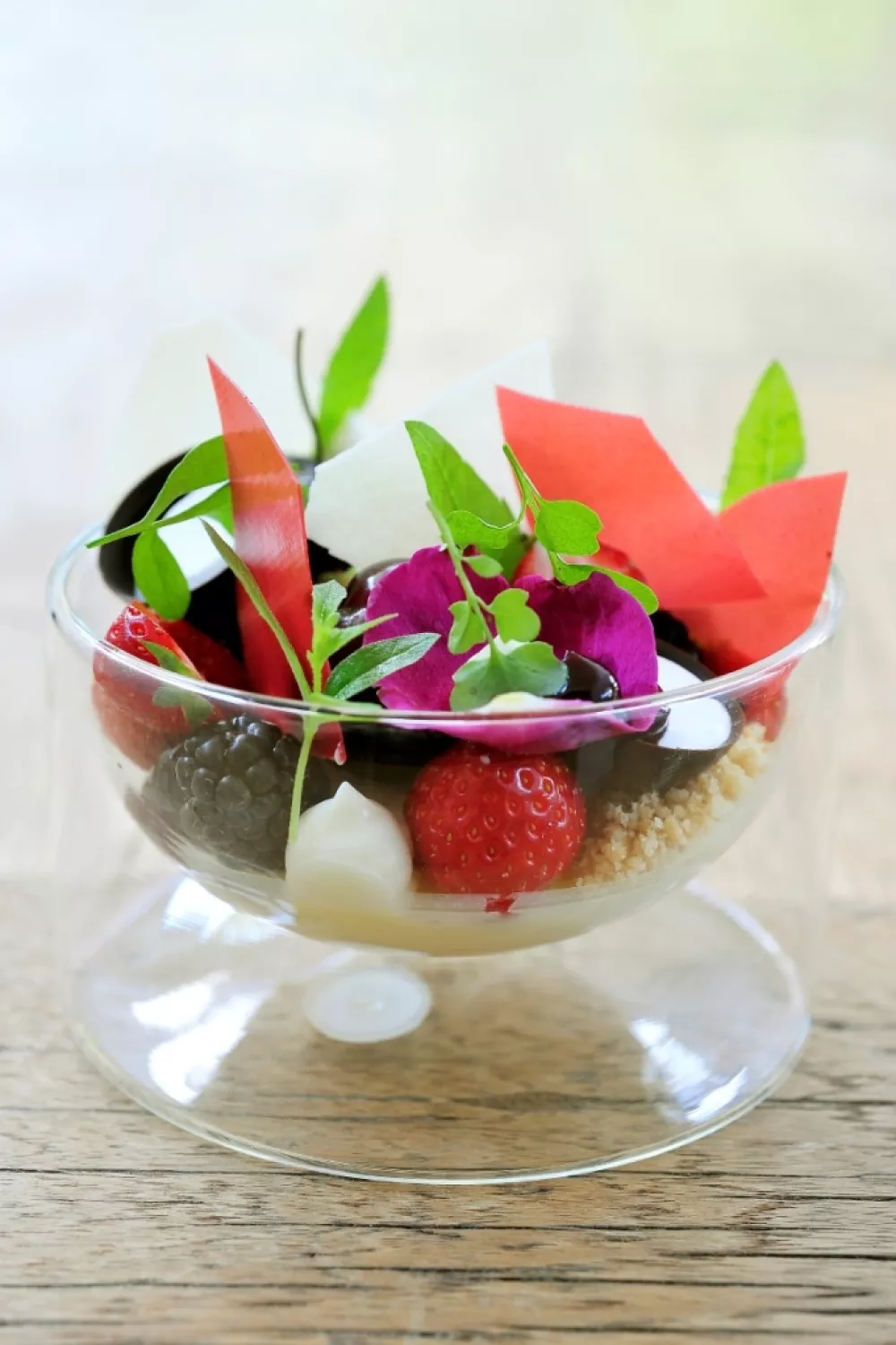 Werk verder af naar keuze met een selectie van rode vruchten en/of krokante koekjes & bloemen.