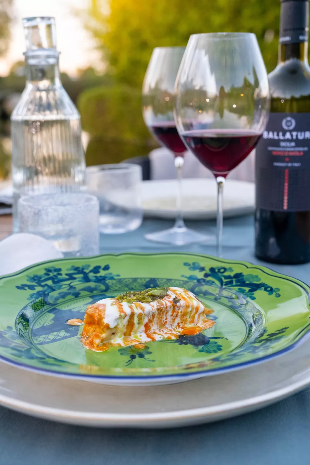 Deze glanzende parmigiana van aubergine combineert zacht gebakken aubergine met langzaam gestoofde kerstomaatjes en een veellaagse smaak van balsamico en romige Parmezaanse crème. Ideaal als vegetarisch hoofdgerecht voor een zomerse avond of feestelijk diner, waarbij glaceren in de oven en zacht stoven diepe, zoetzure tonen vrijgeven. Afgewerkt met frisse basilicumcrème voor een elegante presentatie.